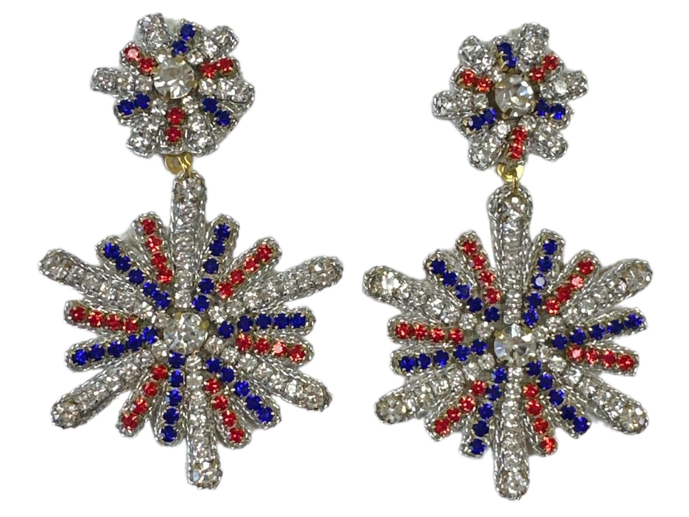 These 4th of July firework earrings are embellished with rhinestone detail. So fun to celebrate America!