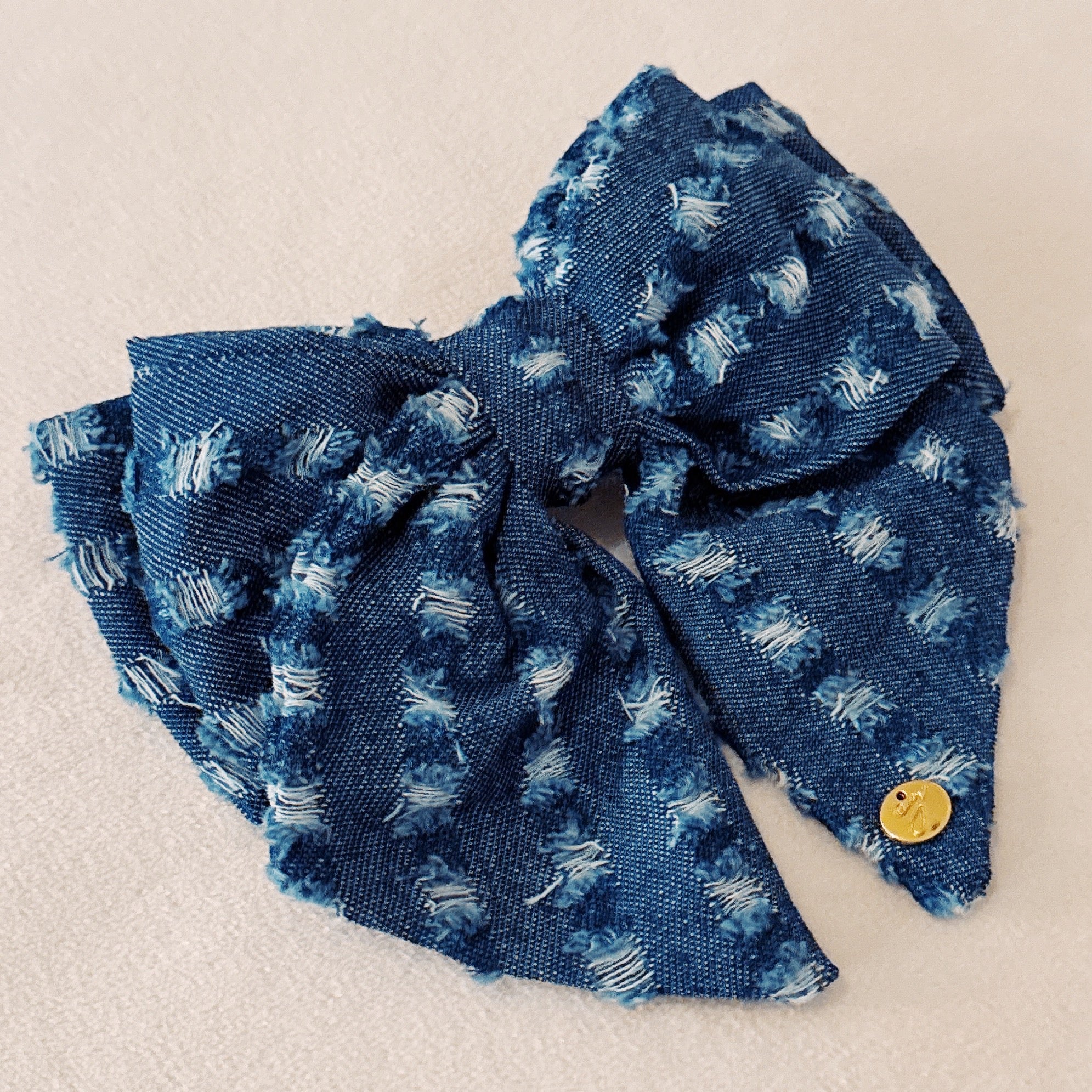 This chic 80's Vibe Distressed Jean Bow Hair Clip adds a retro touch to any outfit. The distressed design makes it easy to dress up or down, perfect for any occasion.