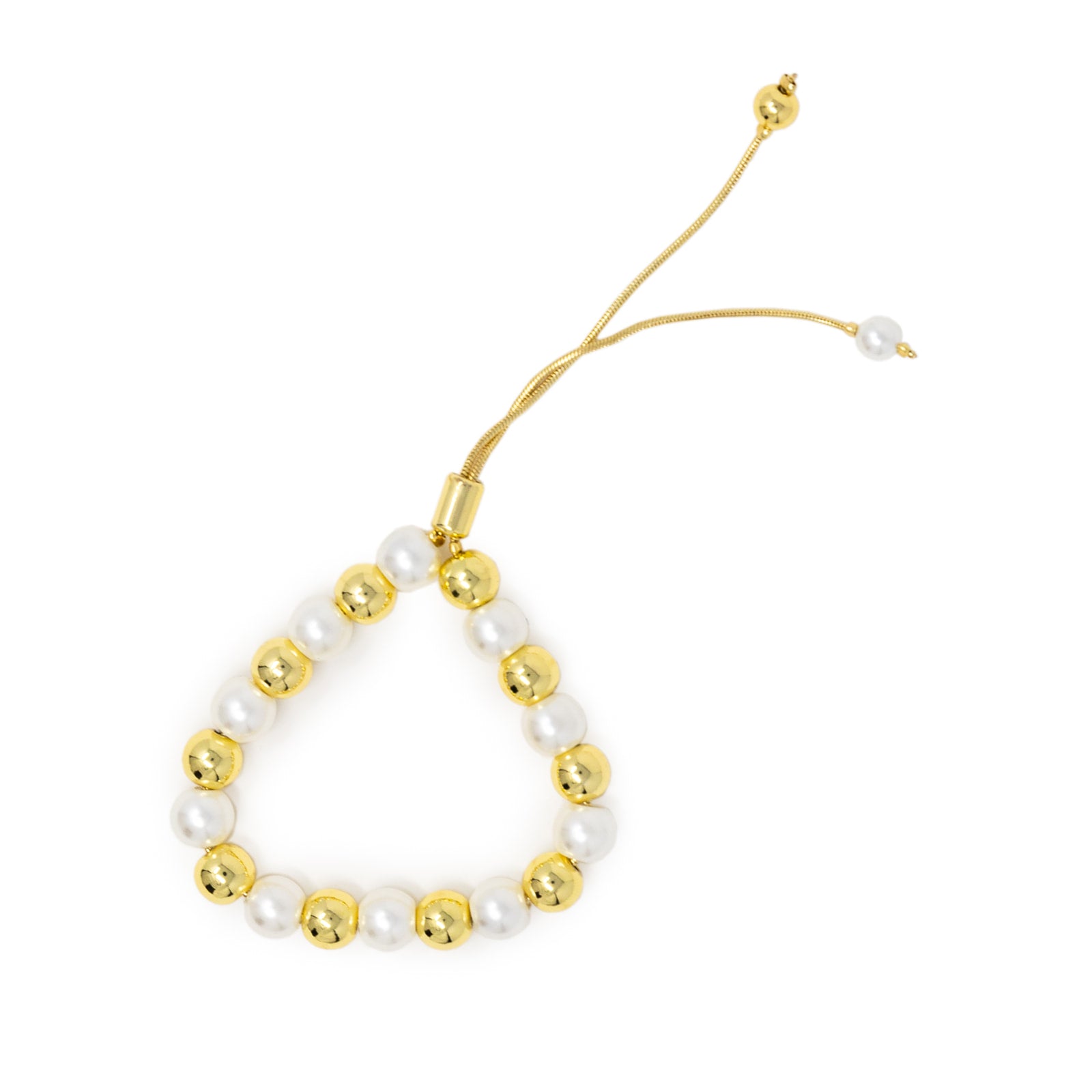 This adjustable bracelet is both elegant and charming with its gold and pearl beads. Its simple yet versatile design can be worn for any occasion. Enjoy its cute and adjustable style, perfect for adding a touch of sophistication to any outfit.