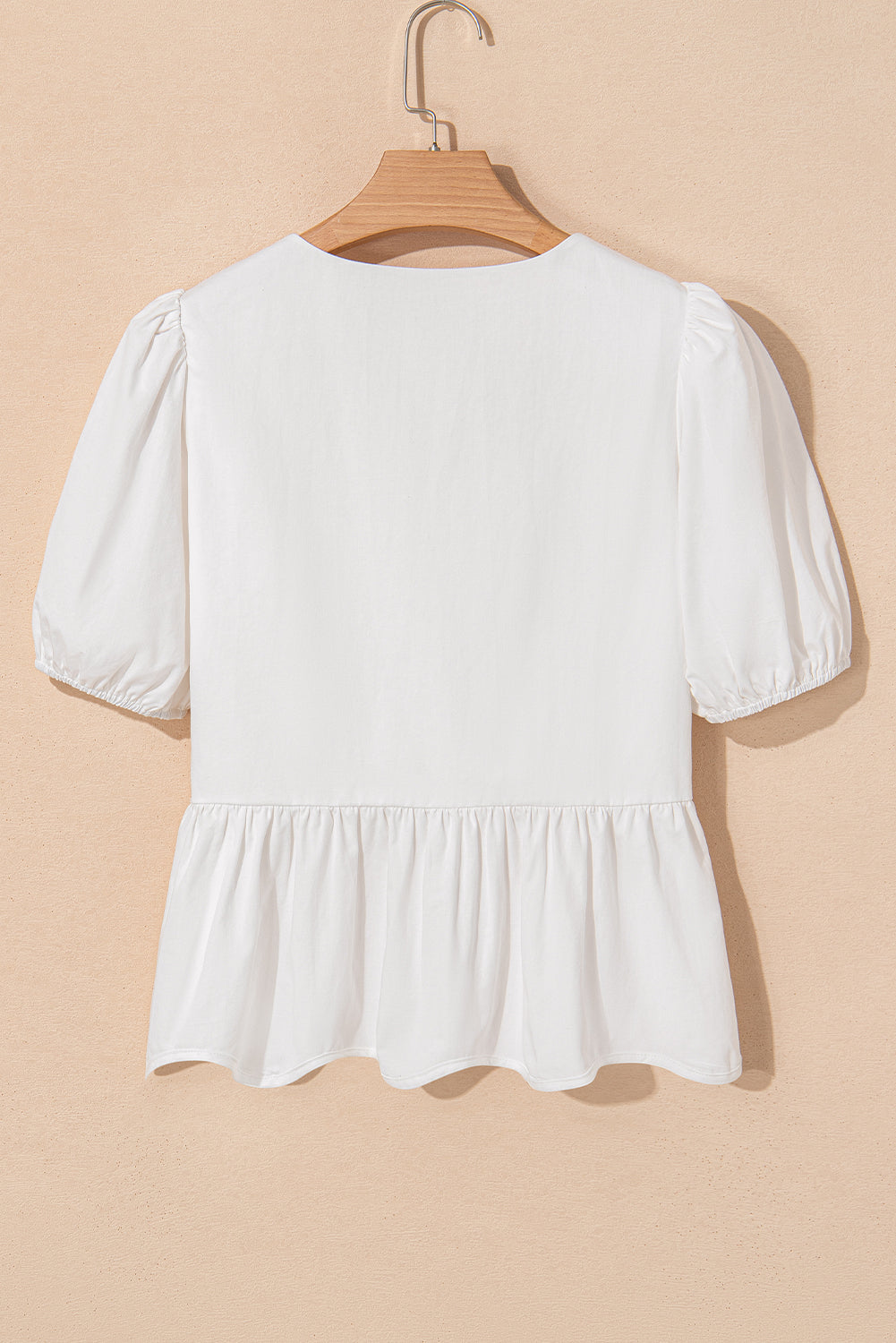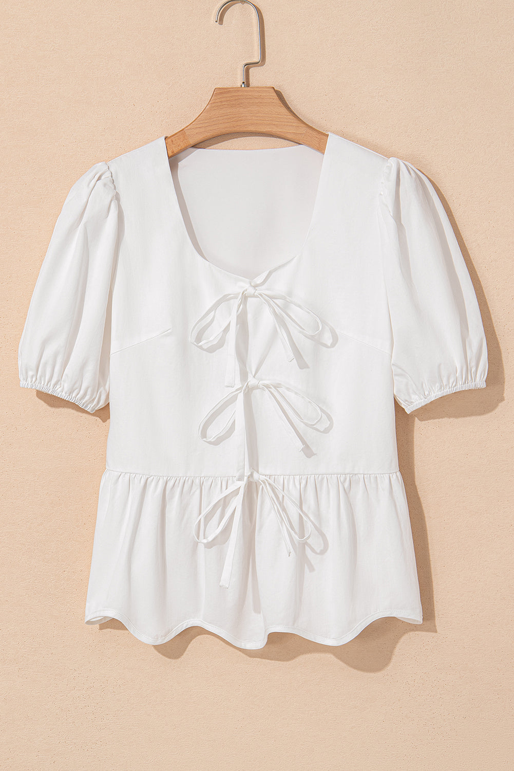 Anaiah Bow Knot Puff Sleeve Peplum Top
