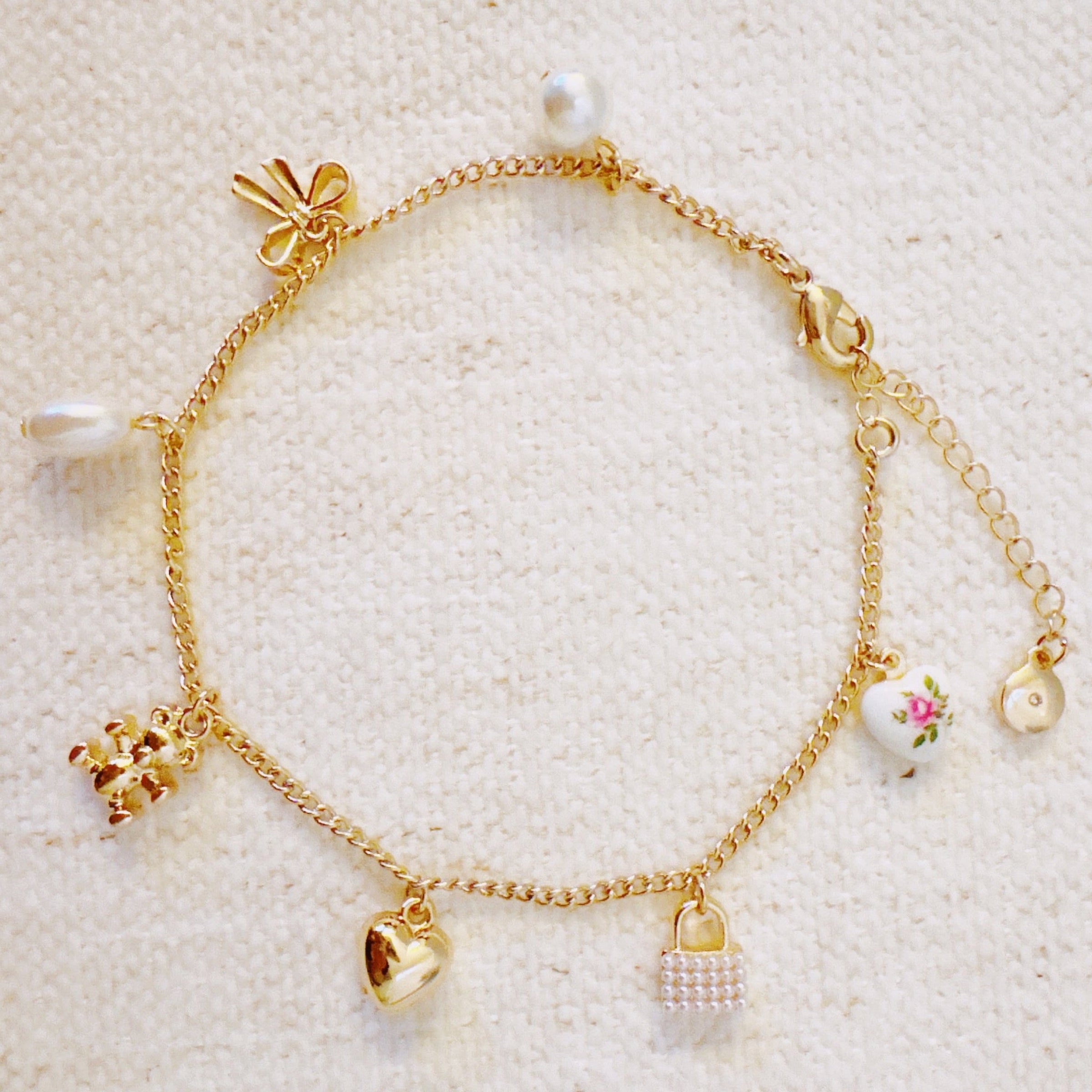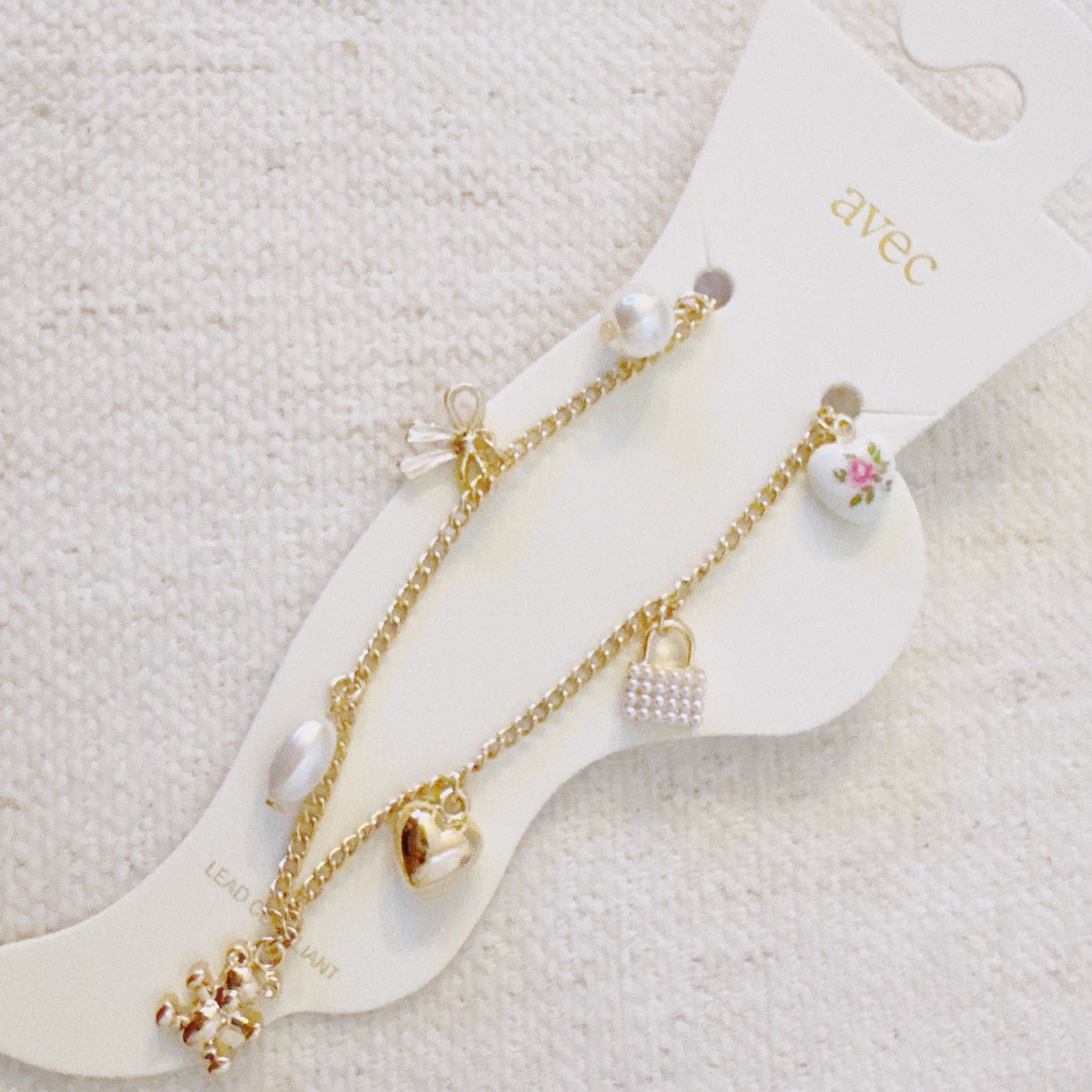 Bear & Bow Charm Anklet – Playful Gold Chain with Heartfelt Details