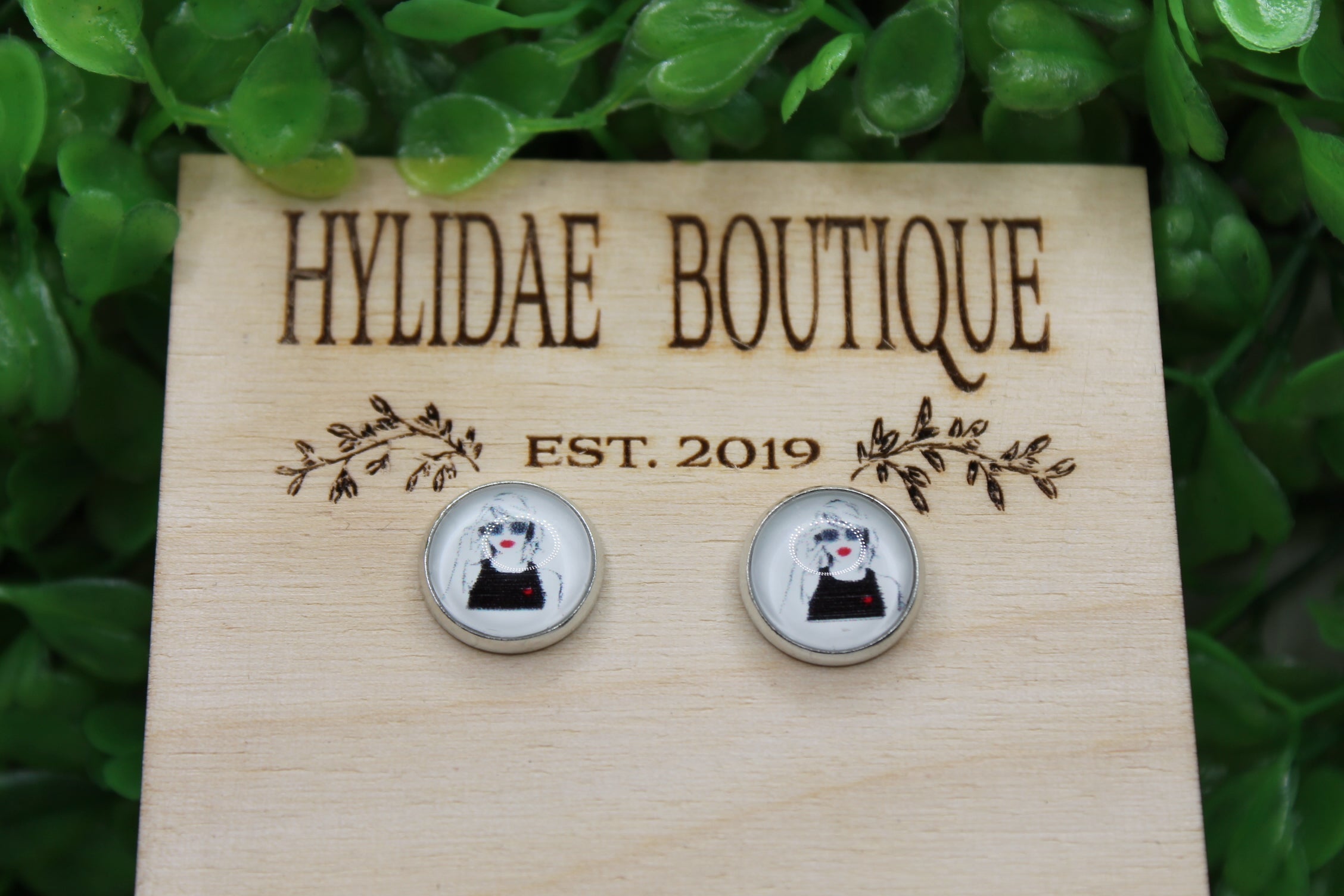 Black & White Taylor with Red Lips and Heart || 12mm Glass Stud Earrings || Hypoallergenic