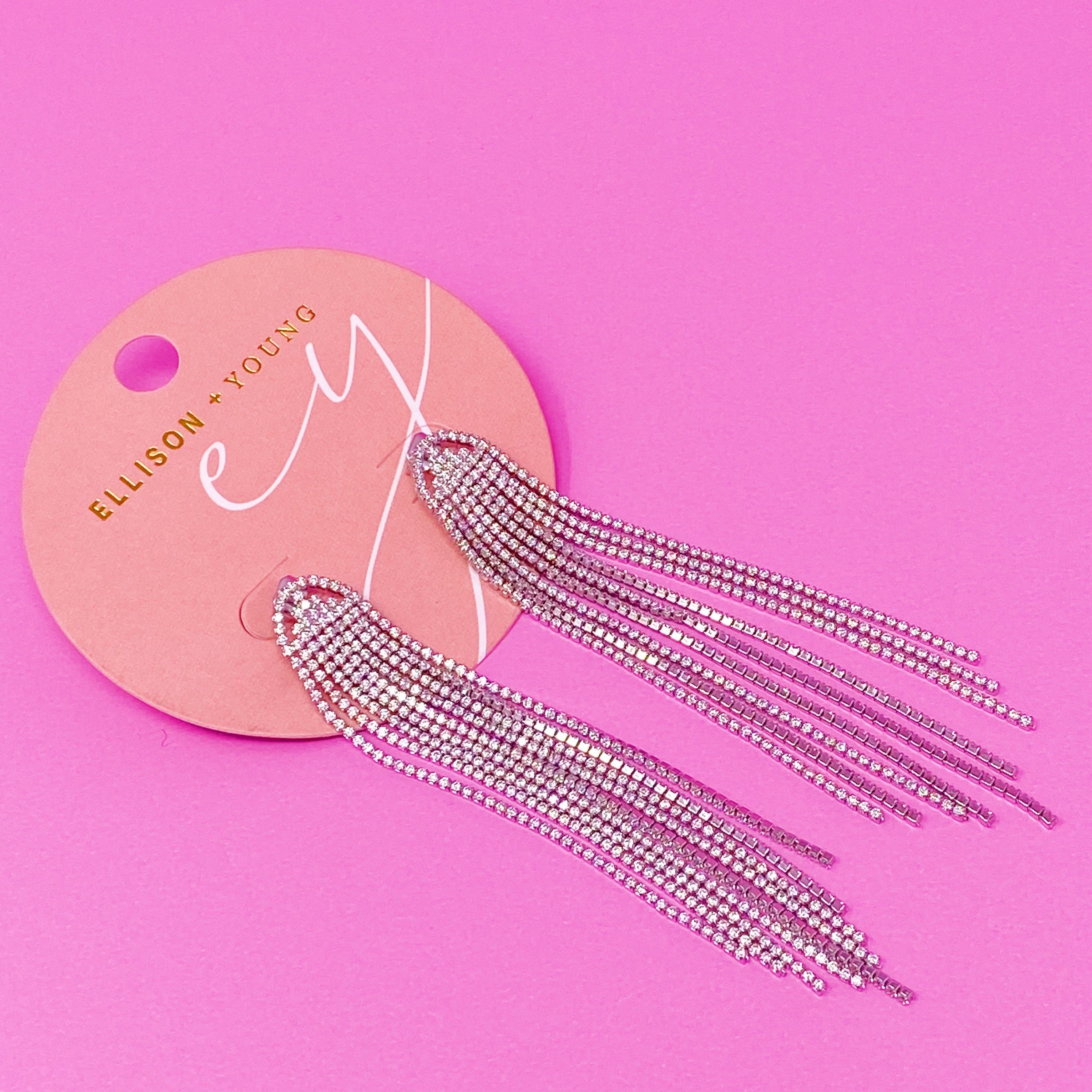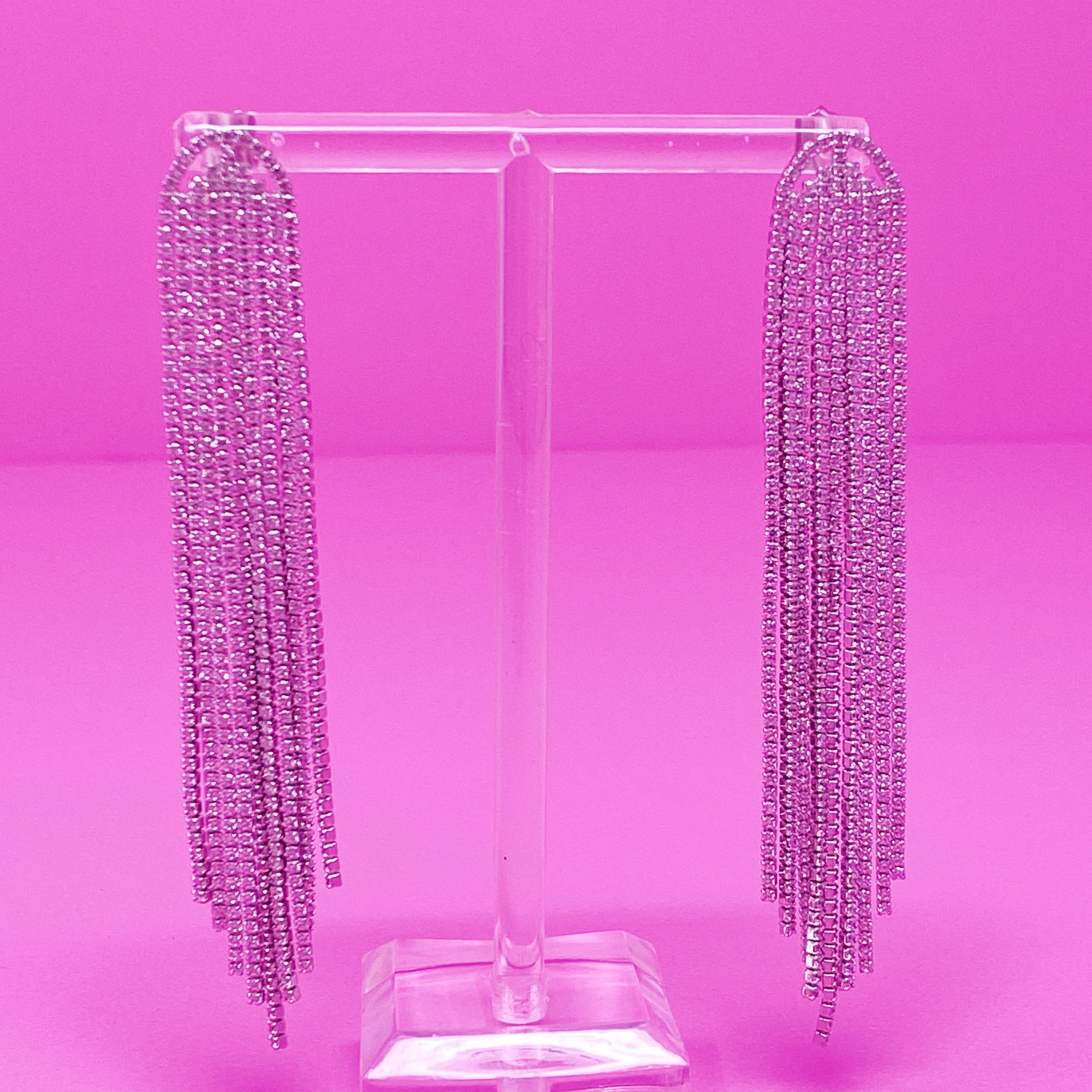 Long drapy shiny earrings. Tiny but shiny Cubic Zirconia strands put together and make a delicate shiny statement piece! Absolutely gorgeous on details!
