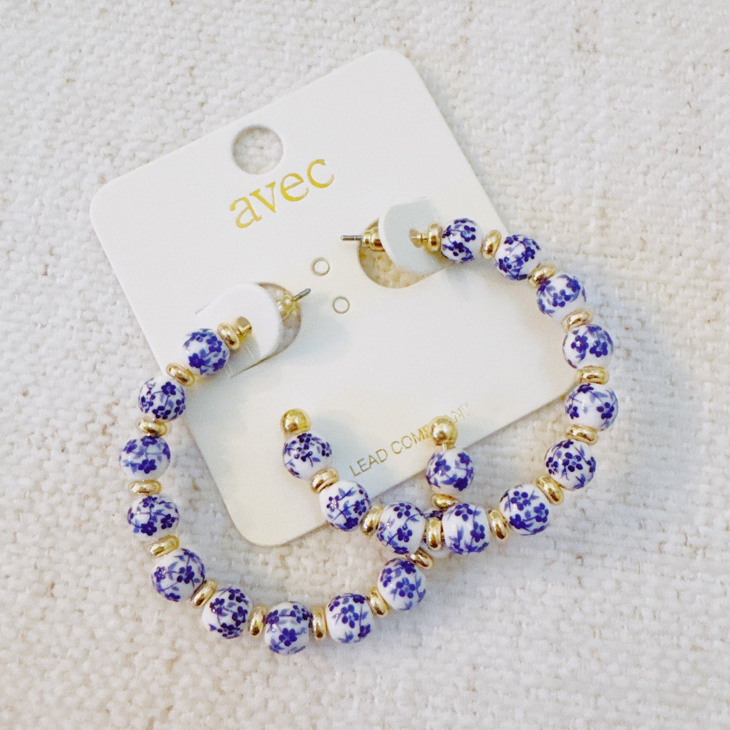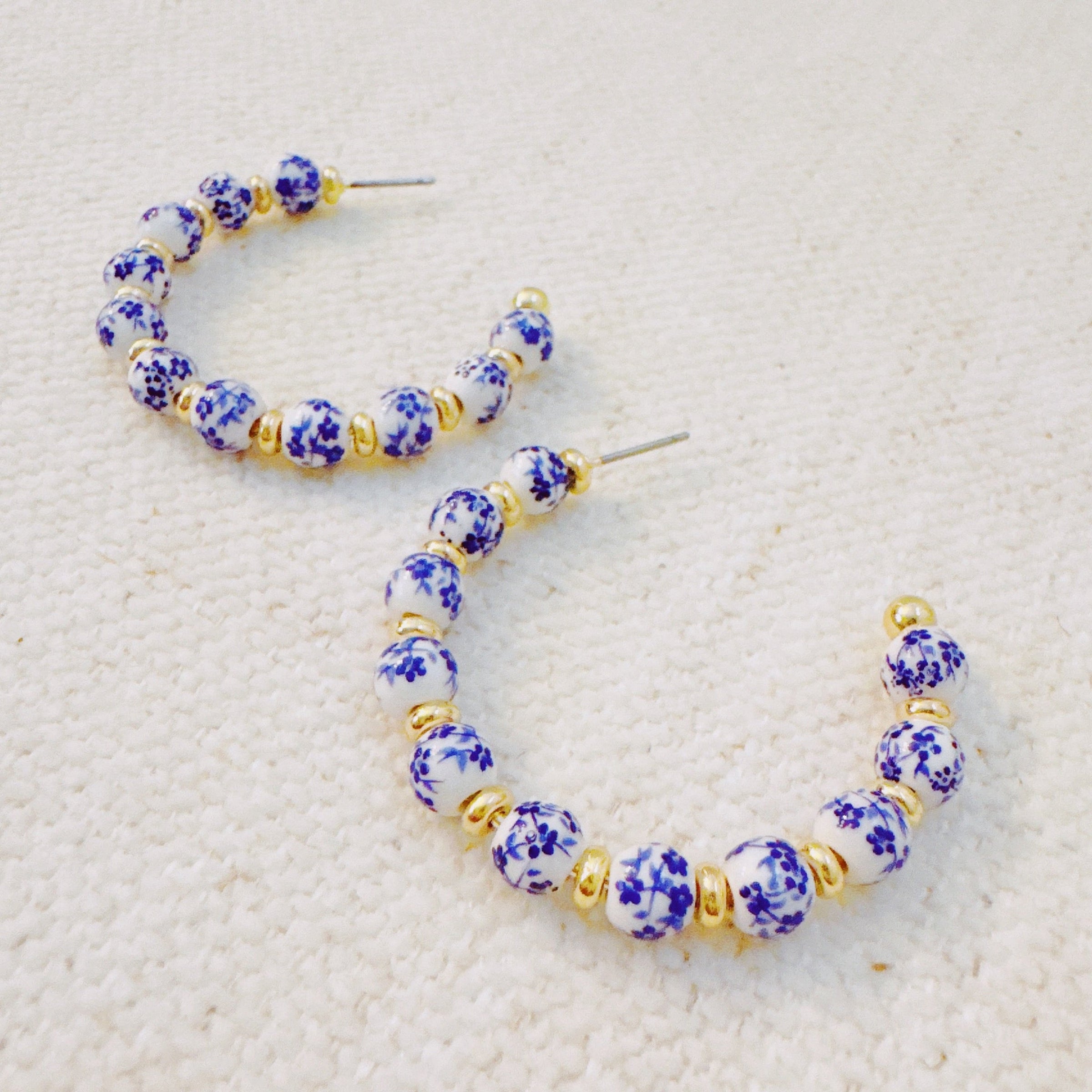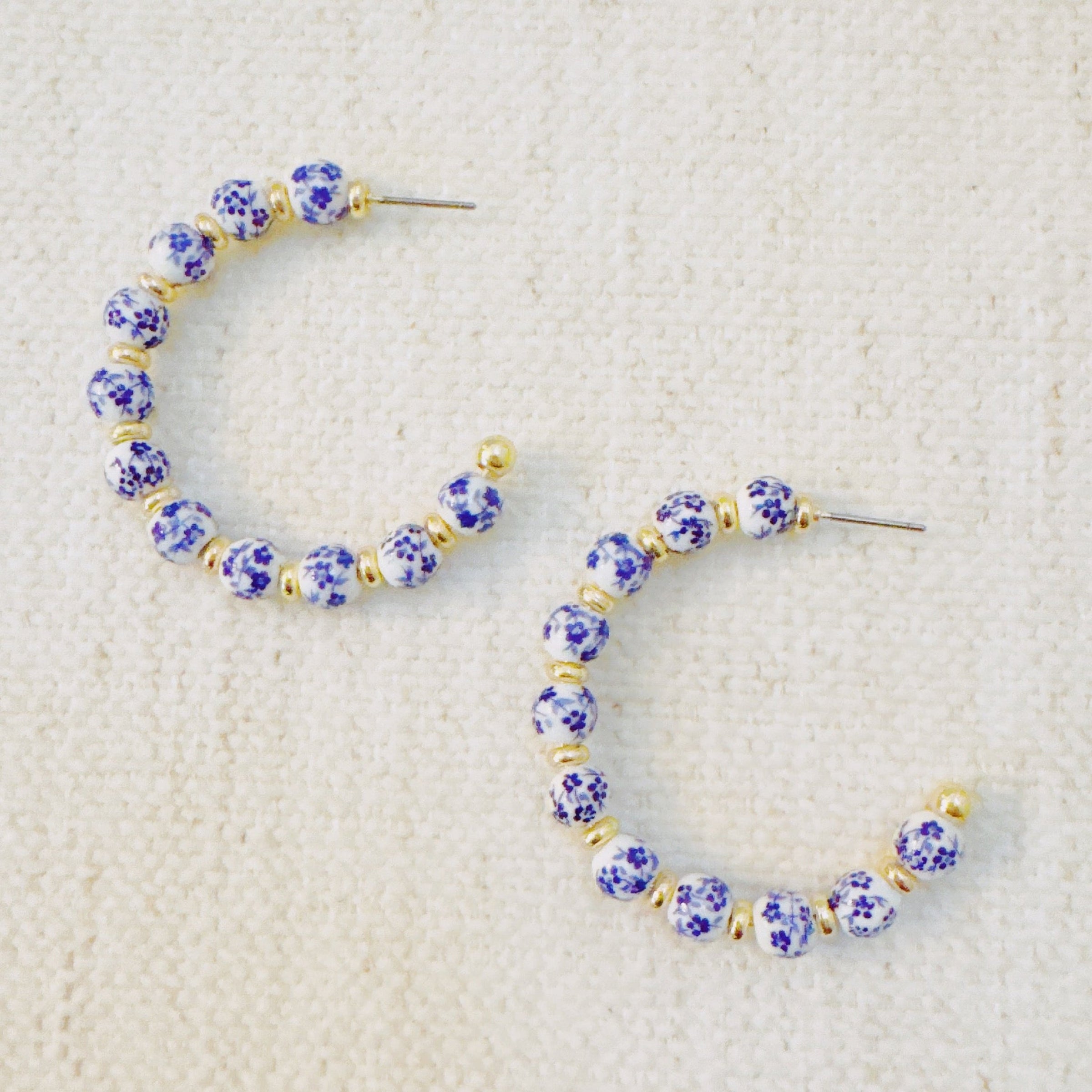 Add a fresh floral touch to your style with the Blue Bloom Floral Hoop Earrings. These charming open hoops are adorned with delicate blue flower beads featuring gold centers, creating a playful yet elegant accessory that brightens any outfit. Lightweight and easy to wear, they bring a fun pop of color to your everyday or dressy looks.