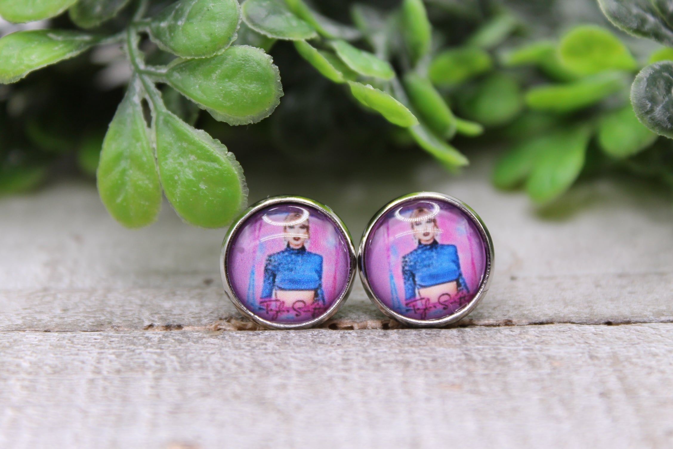 Blue Shirt Taylor || 12mm Glass Stud Earrings || Hypoallergenic
