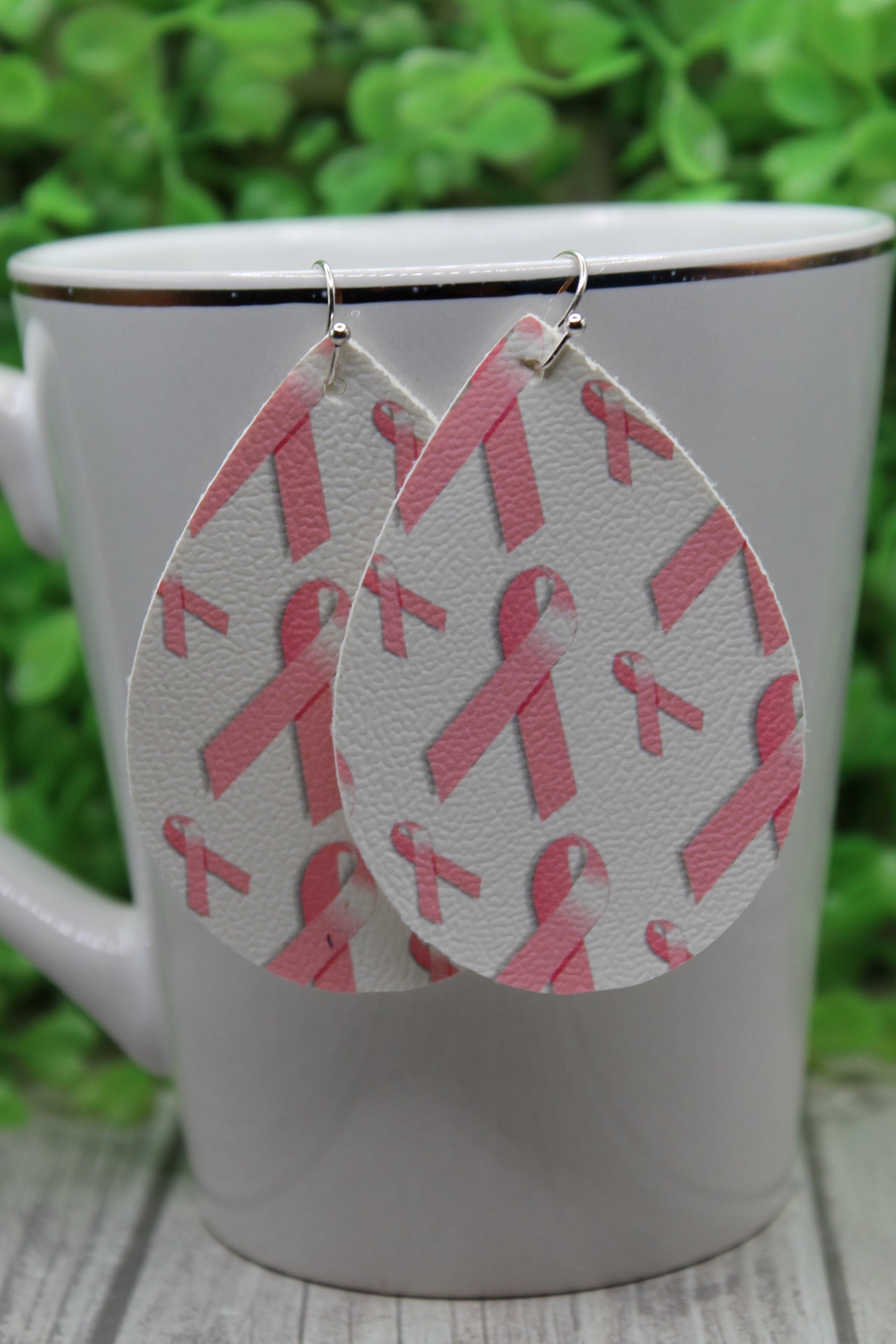 Breast Cancer Awareness • Faux Leather Teardrop Dangle Earrings
