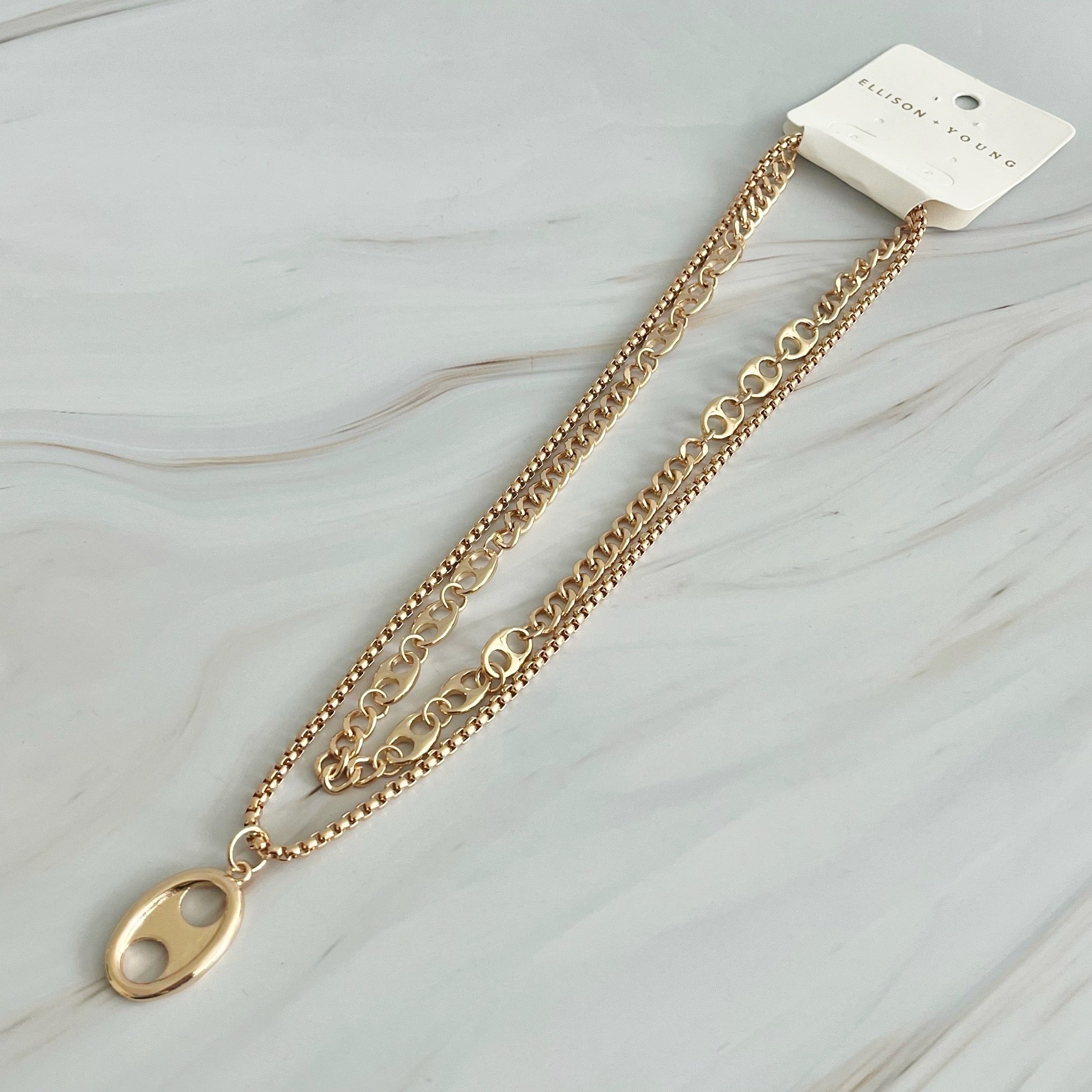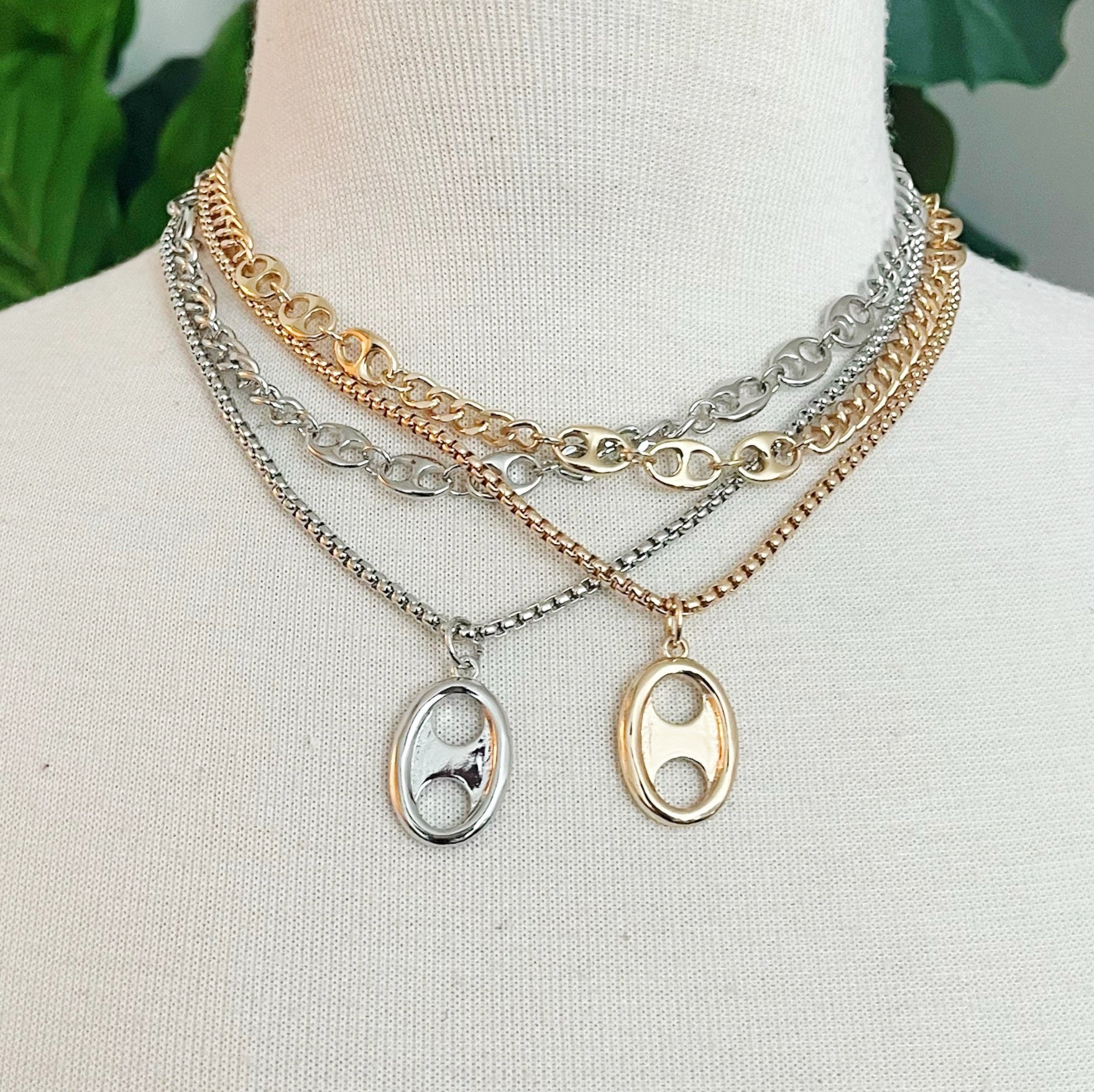 This Golden Necklace Set features 2 separate designer-inspired necklaces that can be worn together for added style, or separately for a more subtle look. Its chic and stylish design allows for easy layering with other pieces, making it a versatile addition to any outfit. Elevate your look with this must-have accessory.