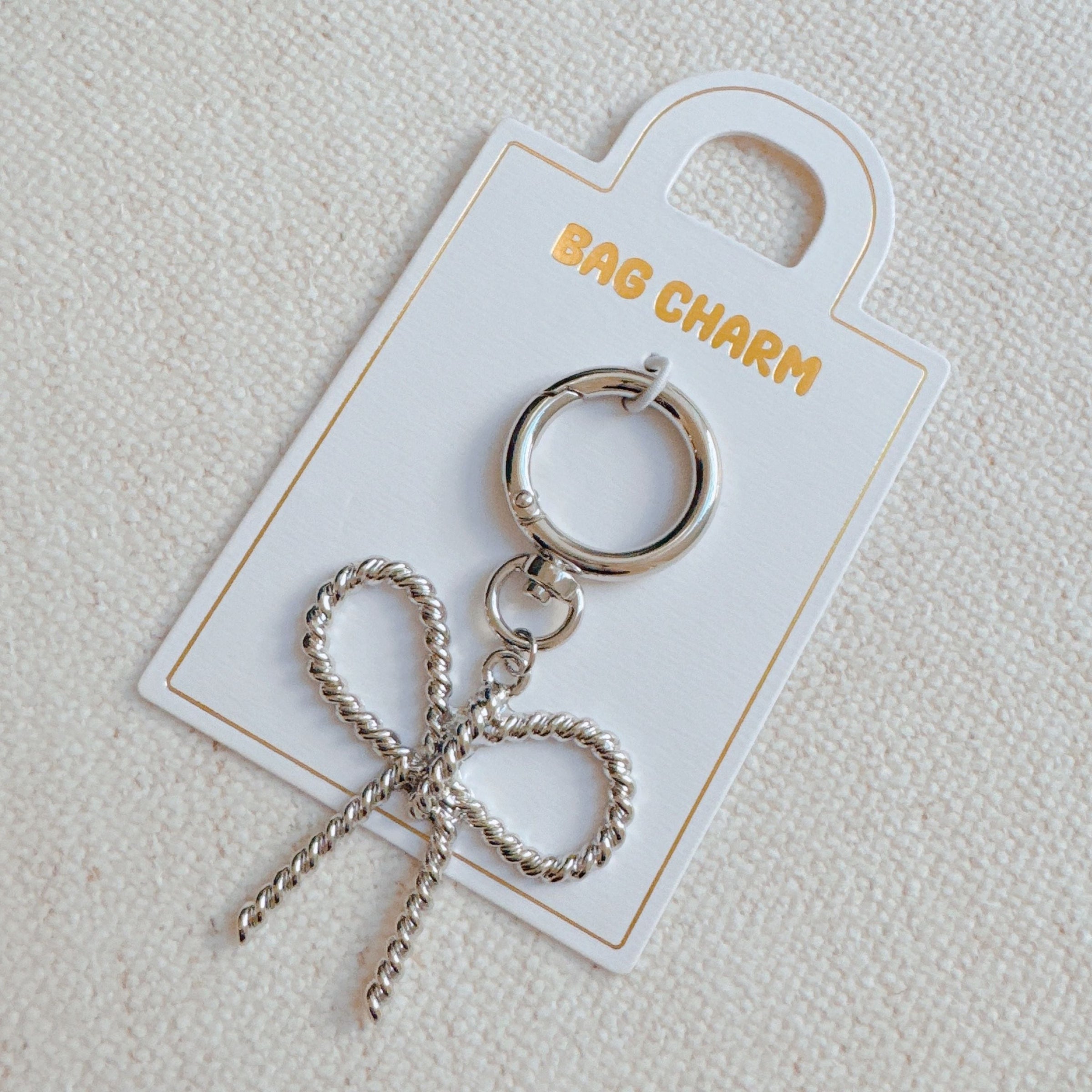 Enhance the look of your favorite handbag with our Cabled Bow Bag Charm. The cabled bow design adds a charming touch to any bag. Elevate your style with this elegant accessory.