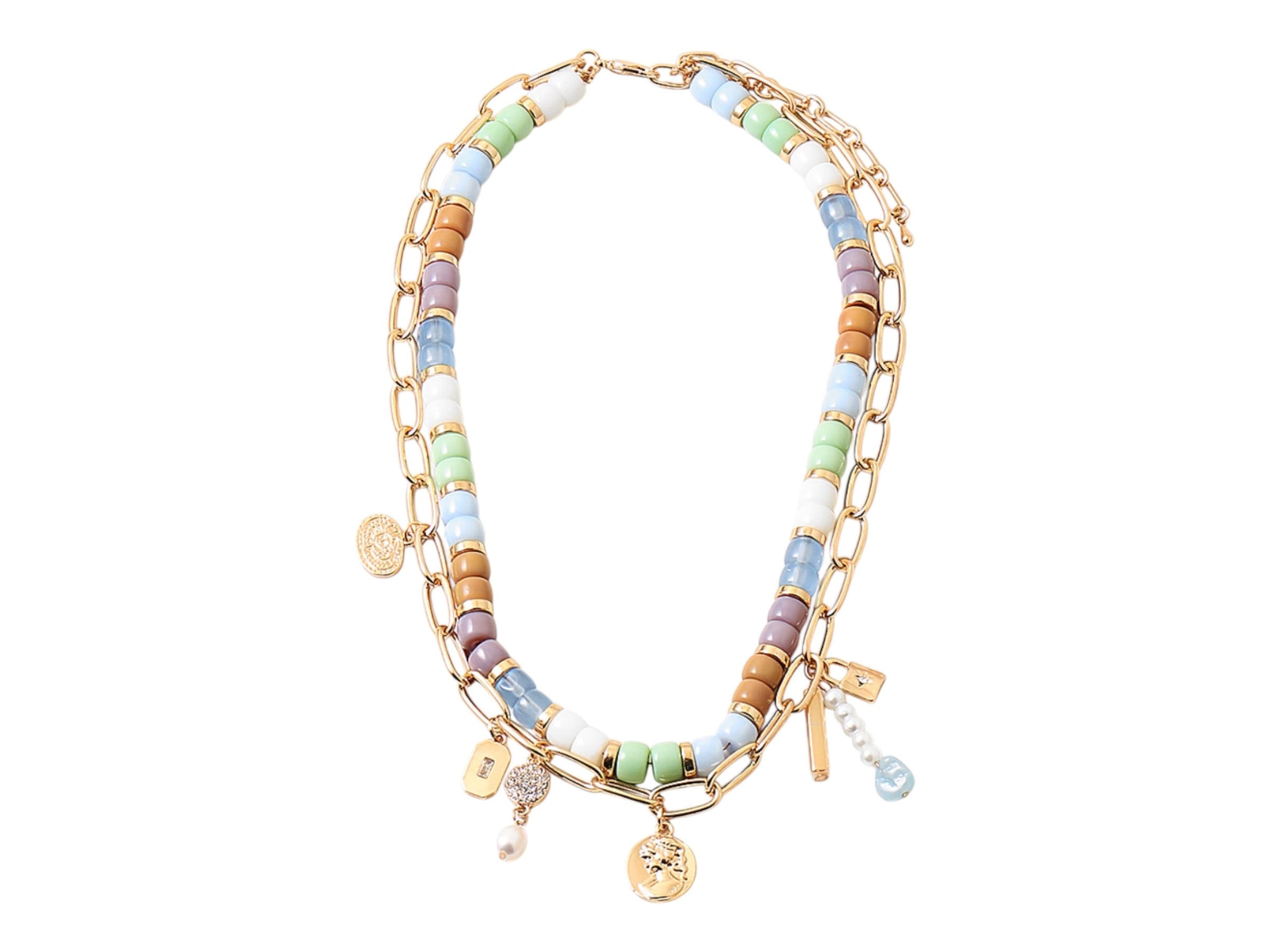 Charm Necklace - Double Layer Pastel Beaded Charm Necklace