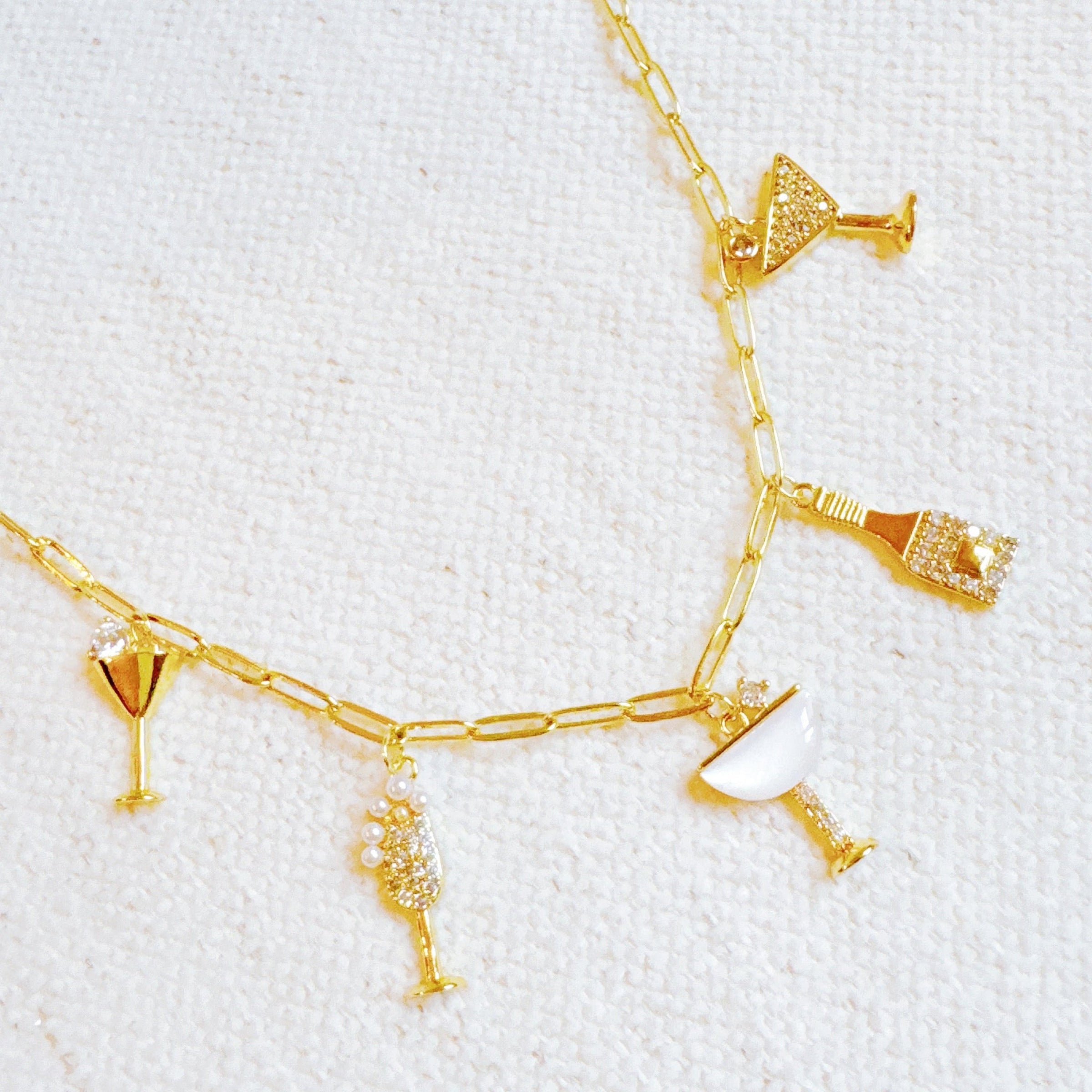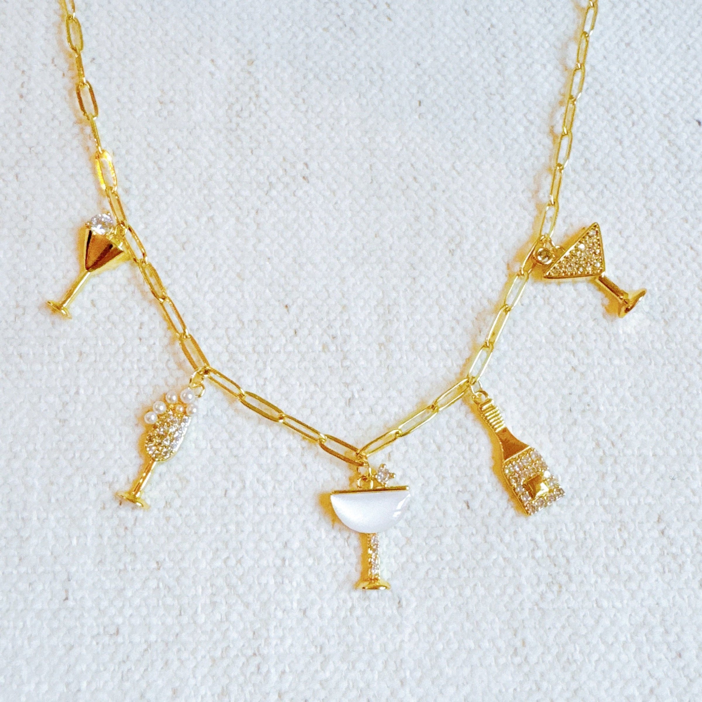 Celebrate joy and style with the Cheers To Happiness Multi Charm Necklace. Featuring a playful mix of unique charms, this necklace brings a fun and uplifting vibe to any outfit. It's a standout accessory that radiates positive energy.