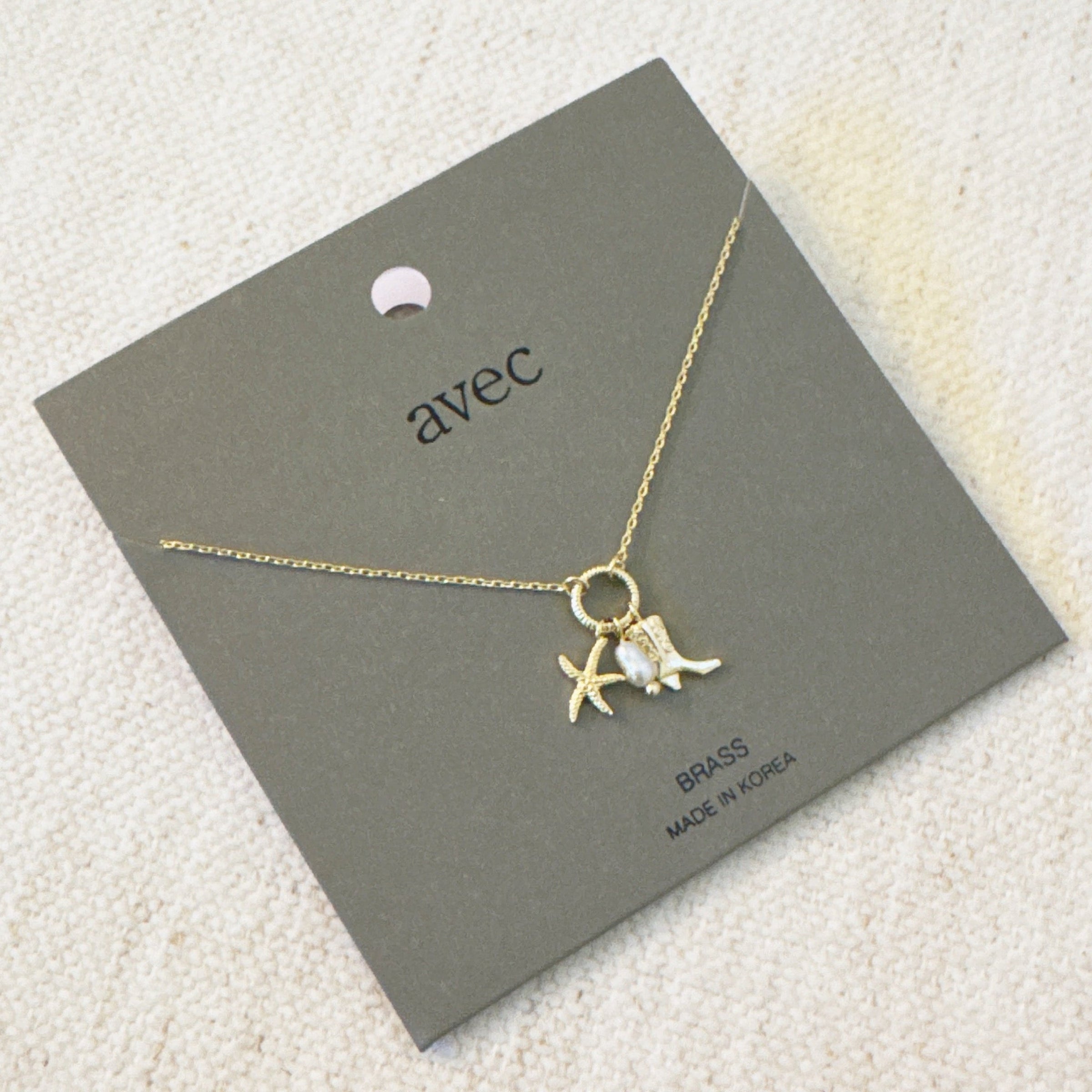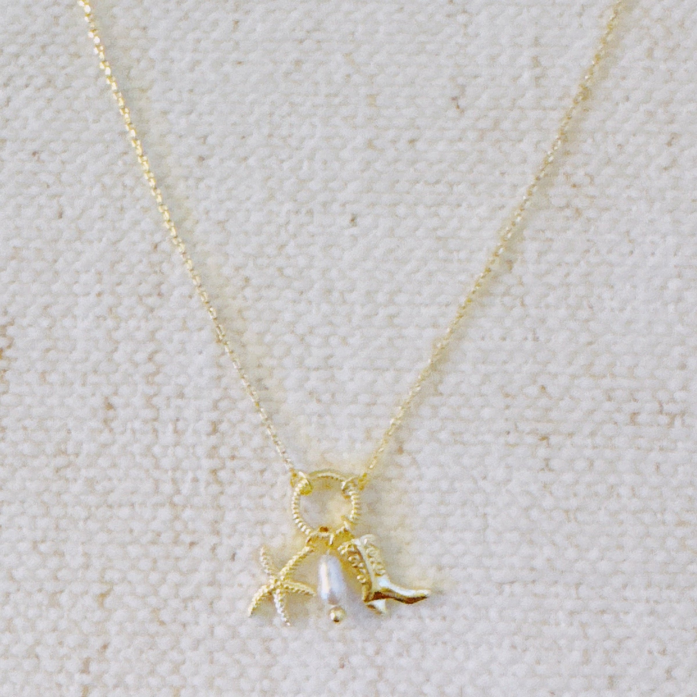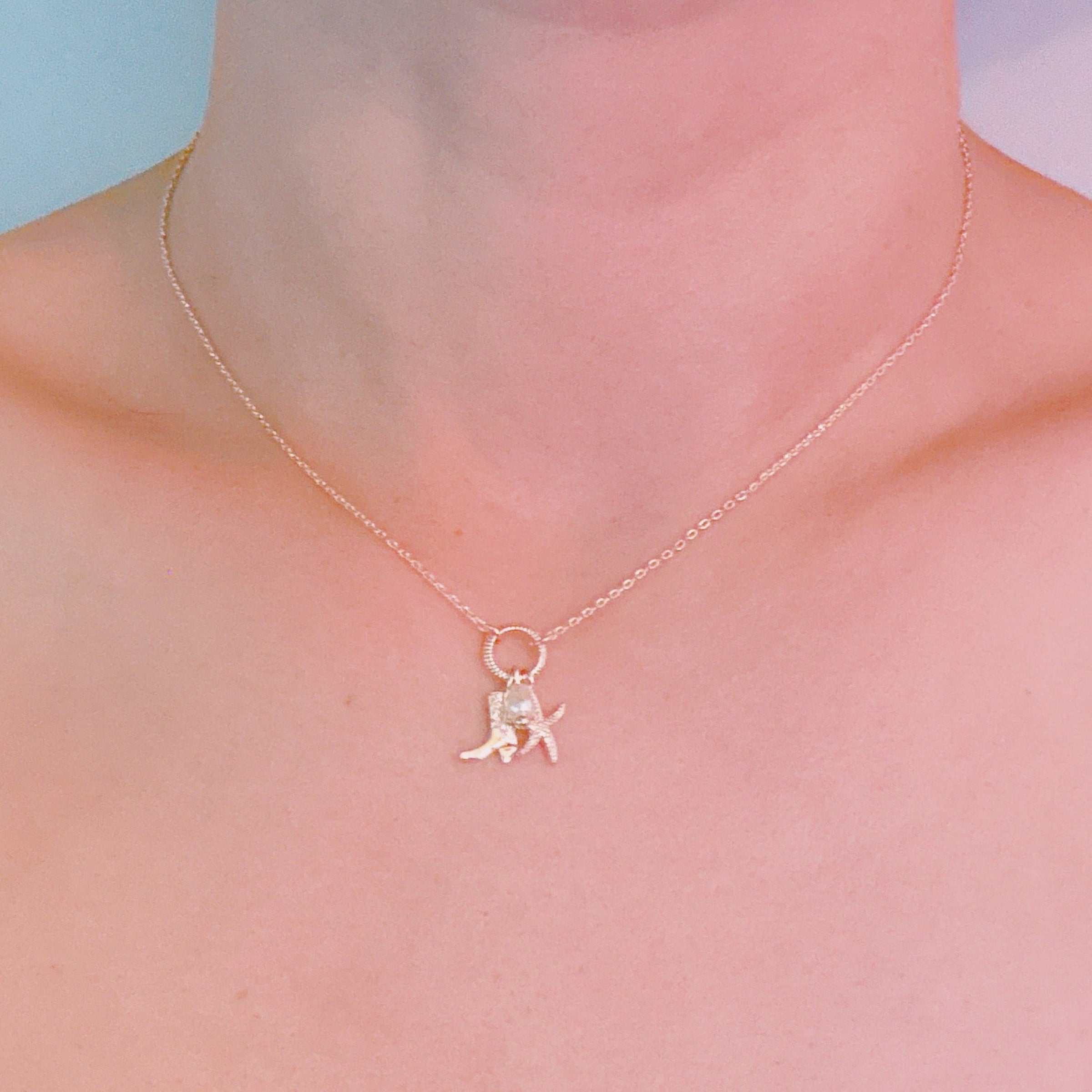 Coastal Cowgirl Necklace – Gold-Tone Chain with Starfish and Western Boot Charms
