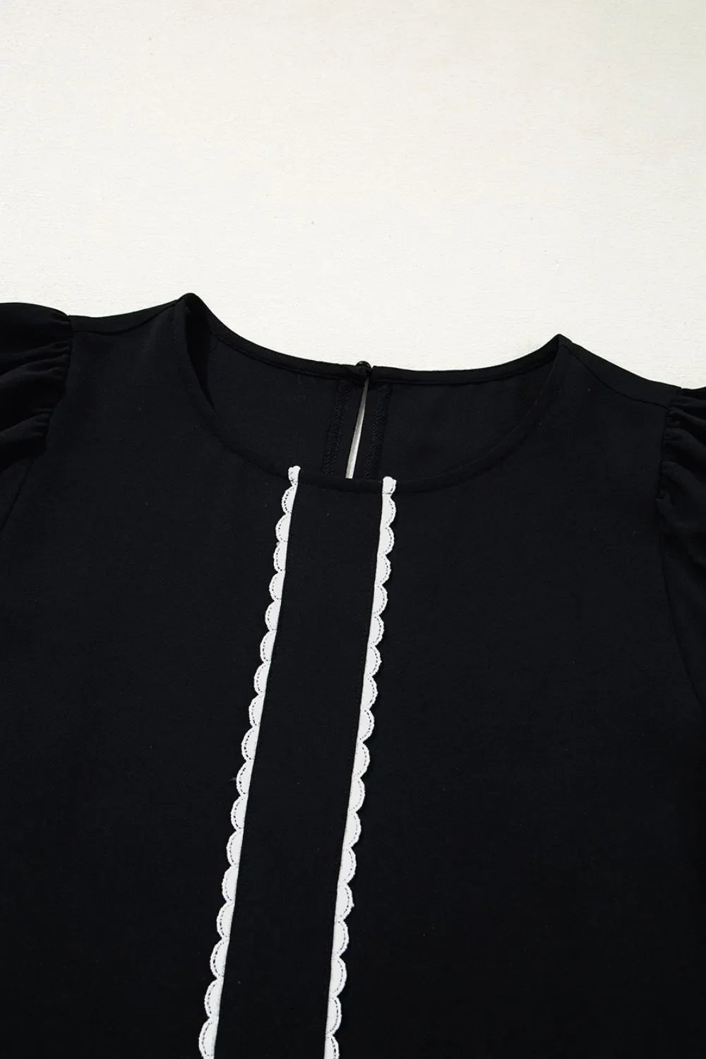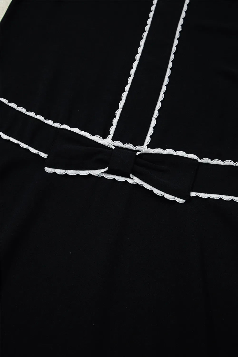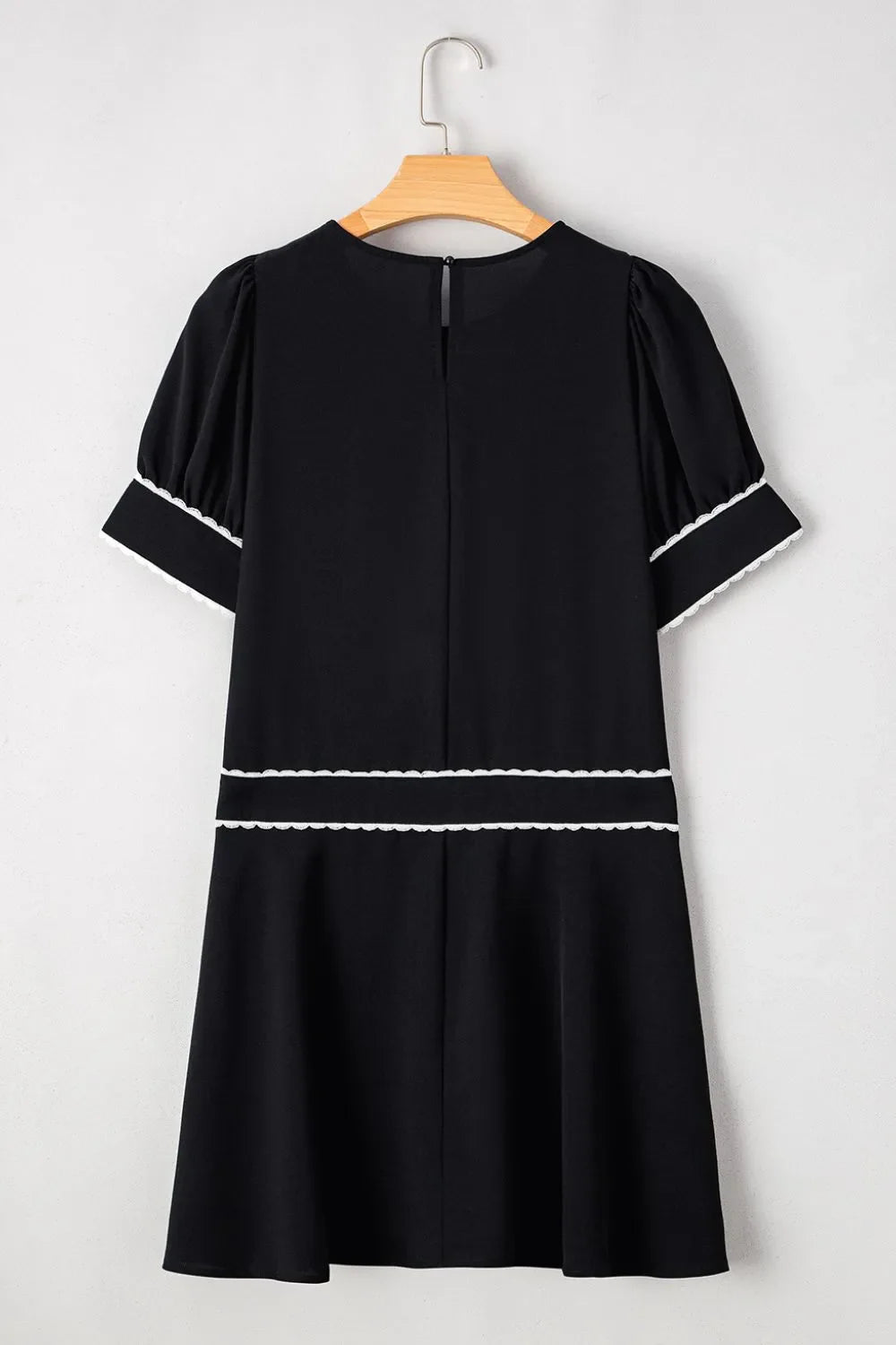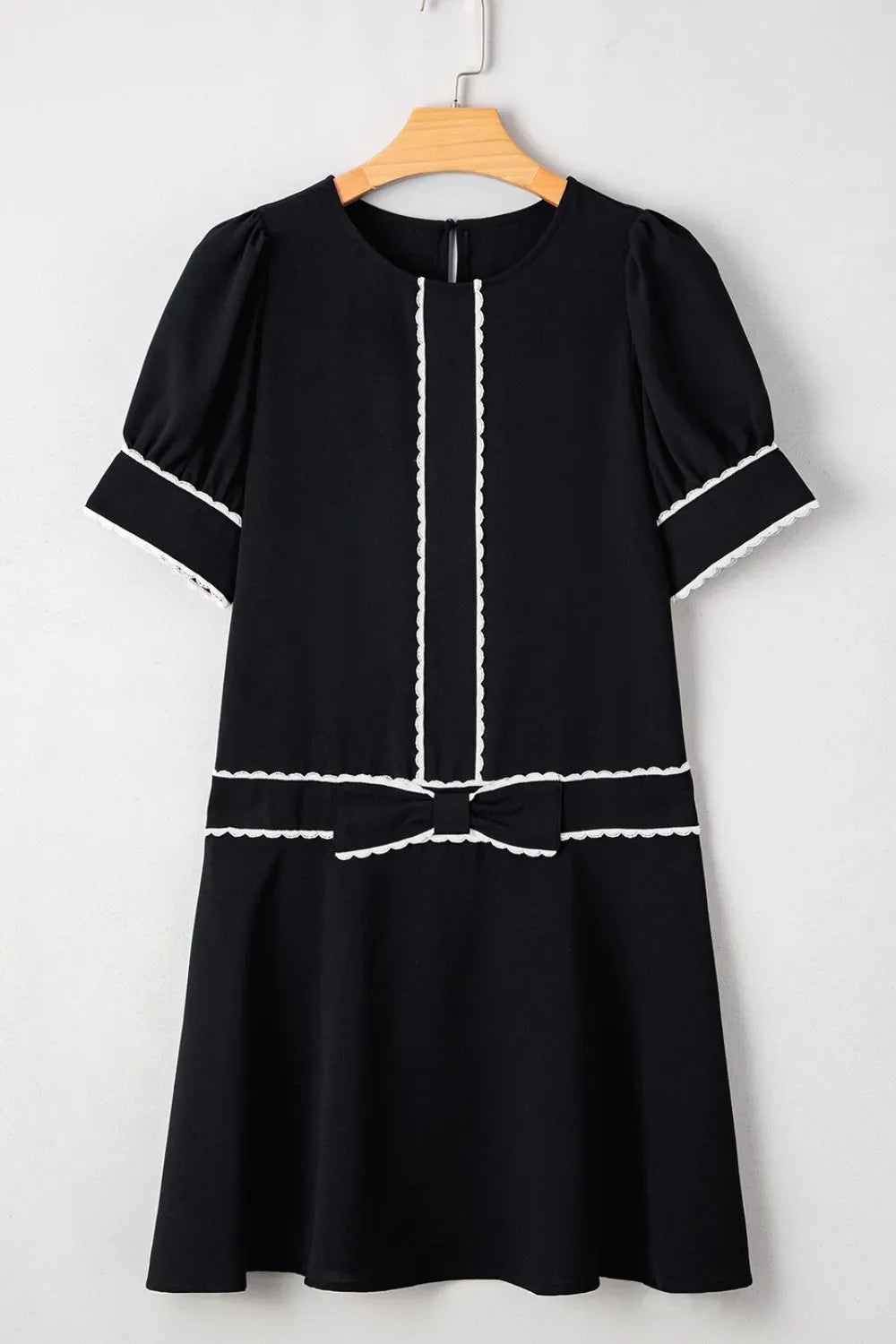 Contrast Scallop Trim Bow Detail Short Sleeve Shift Dress