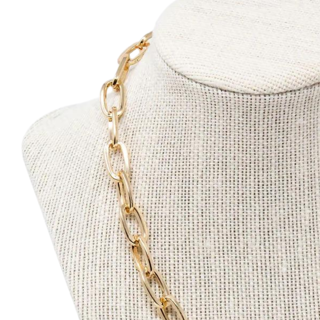 Make a statement with the Courtney Necklace! This 18" accessory is perfect for every day thanks to it's gold chunky chain and timeless design. Put the finishing touches on your outfit and make a statement with Courtney!