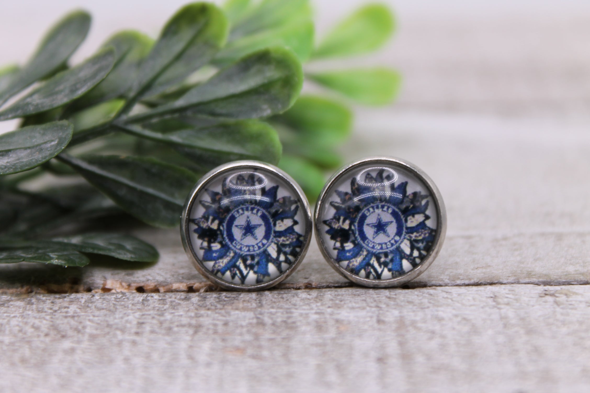Cowboys Football Sunflower || 12mm Glass Stud Earrings || Hypoallergenic