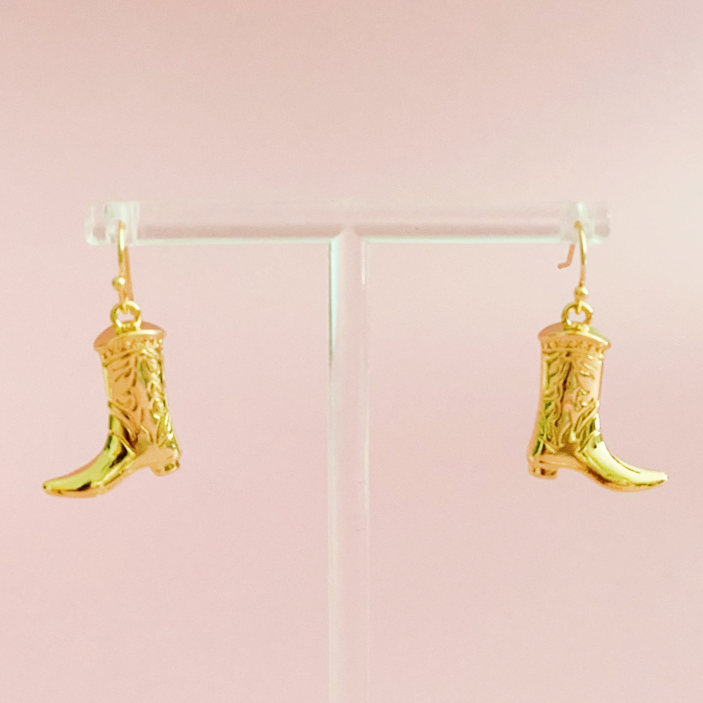 These Cowgirl Bootie Dangle Earrings will instantly add a stylish, western-inspired flair to any look. This trendy fishhook design features detailed cowgirl boot charms and is sure to make a statement.