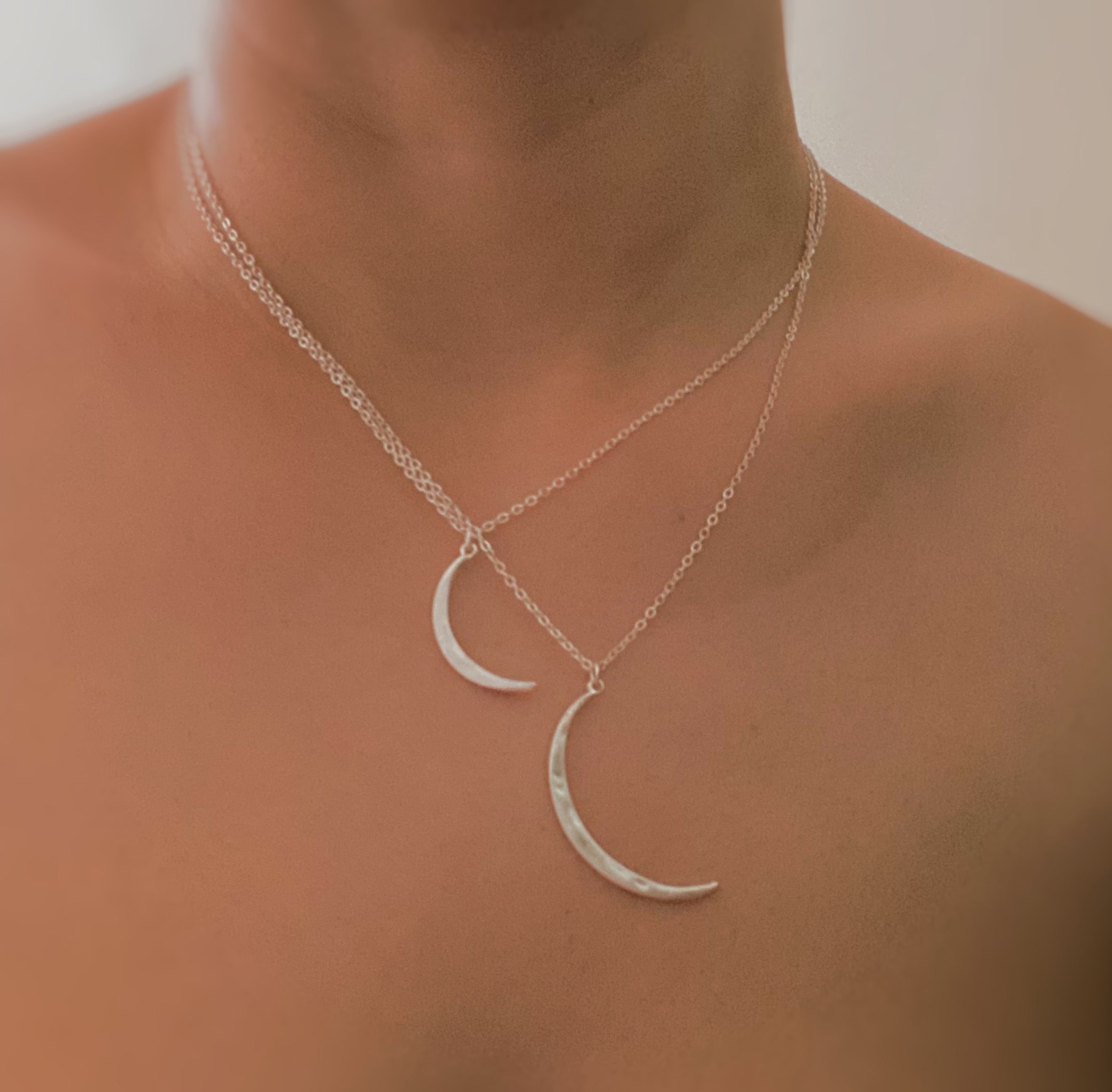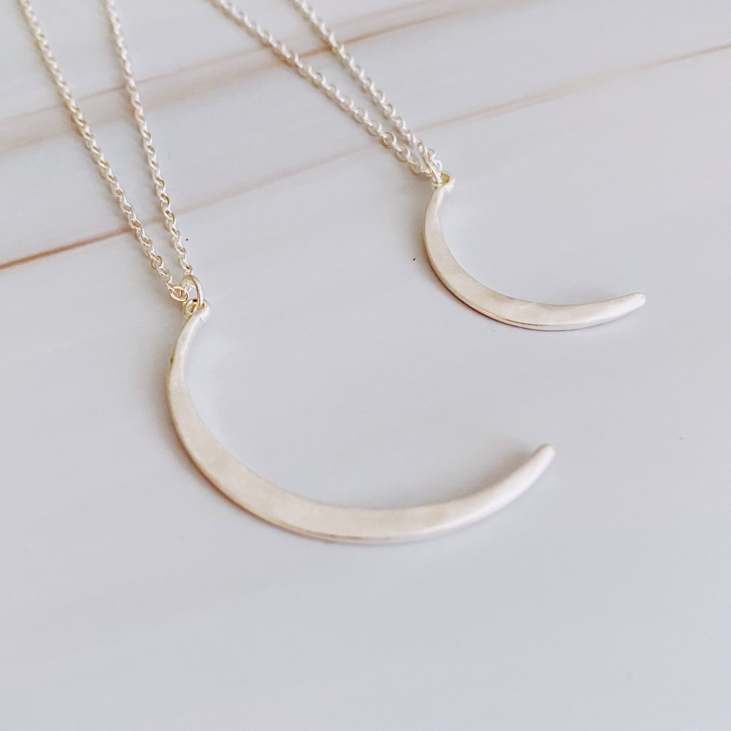 Make a stylish statement with this Crescent Duo Necklace Set Of 2. Featuring two different sizes of beautiful crescent pendants, this set allows for stylish layering. Perfect for any occasion, you can pick one or both for versatile styling options. Create an eye-catching look with this fashionable piece.