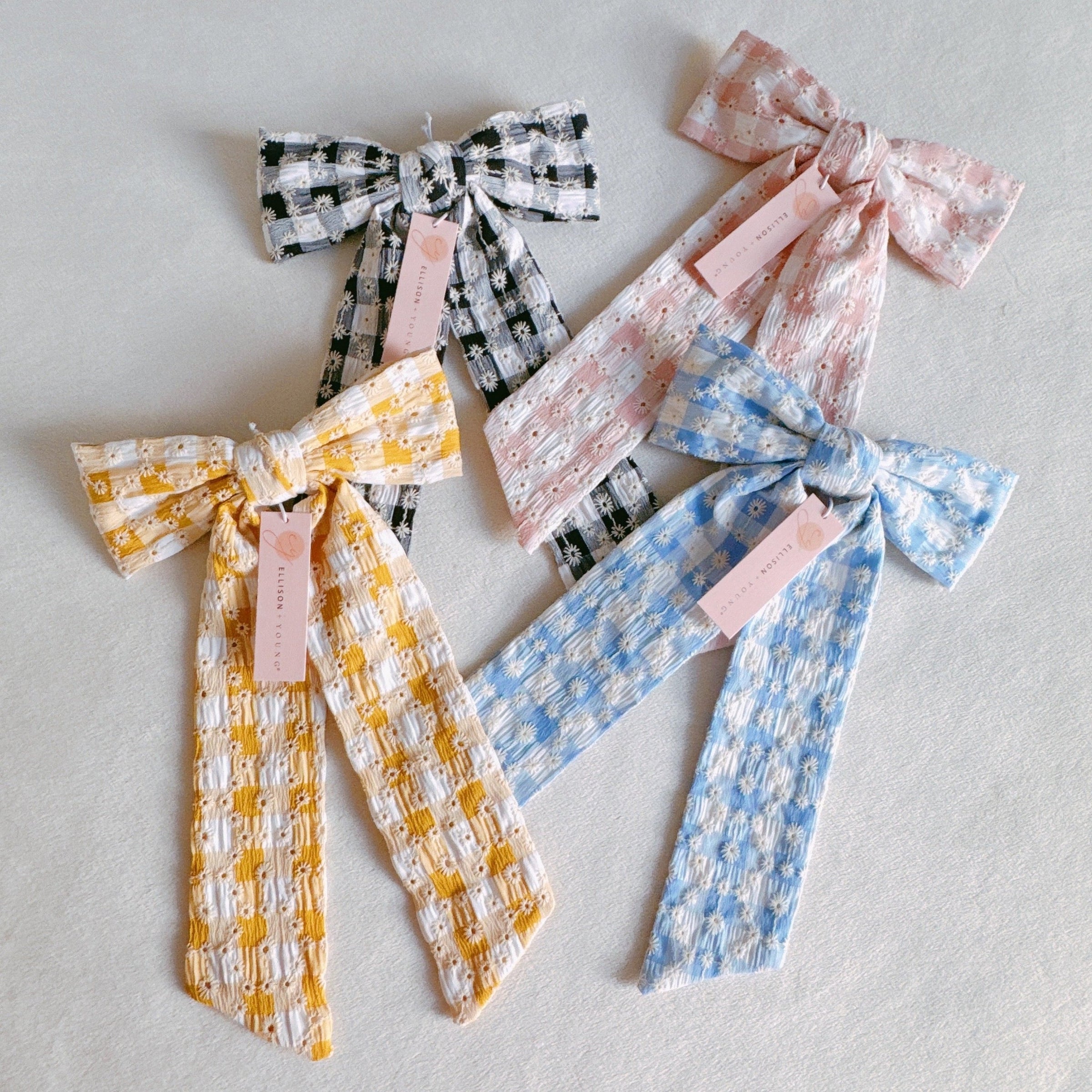 This clip has modern and stylish daisy gingham pattern and is sure to make a statement, while the lovely bow design adds a soft touch. Perfect for any occasion, this hair clip is the perfect accessory for any fashion-forward individual.