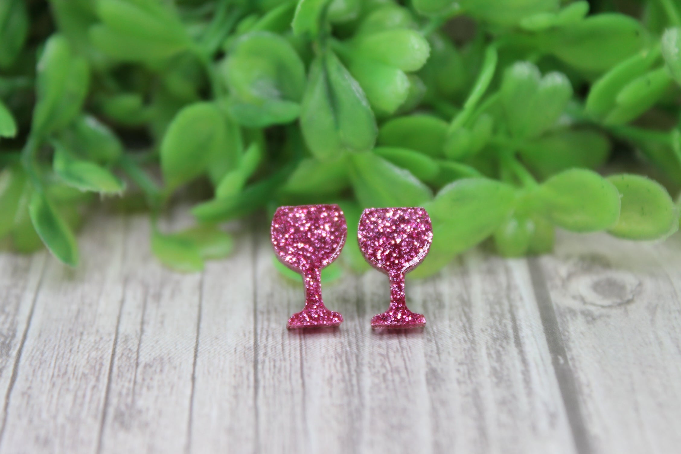 Dark Pink Glitter Wine Glasses • Stud Earrings
