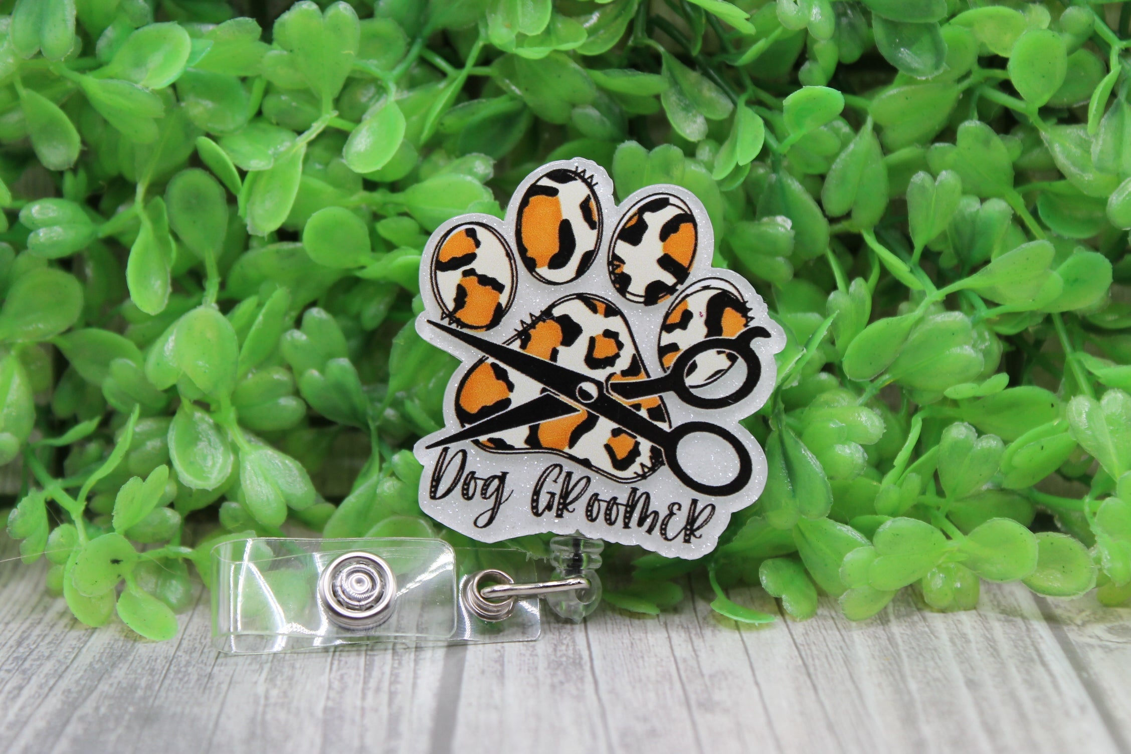 Dog Groomer Leopard Paw Print • Badge/ID Holder with Clip
