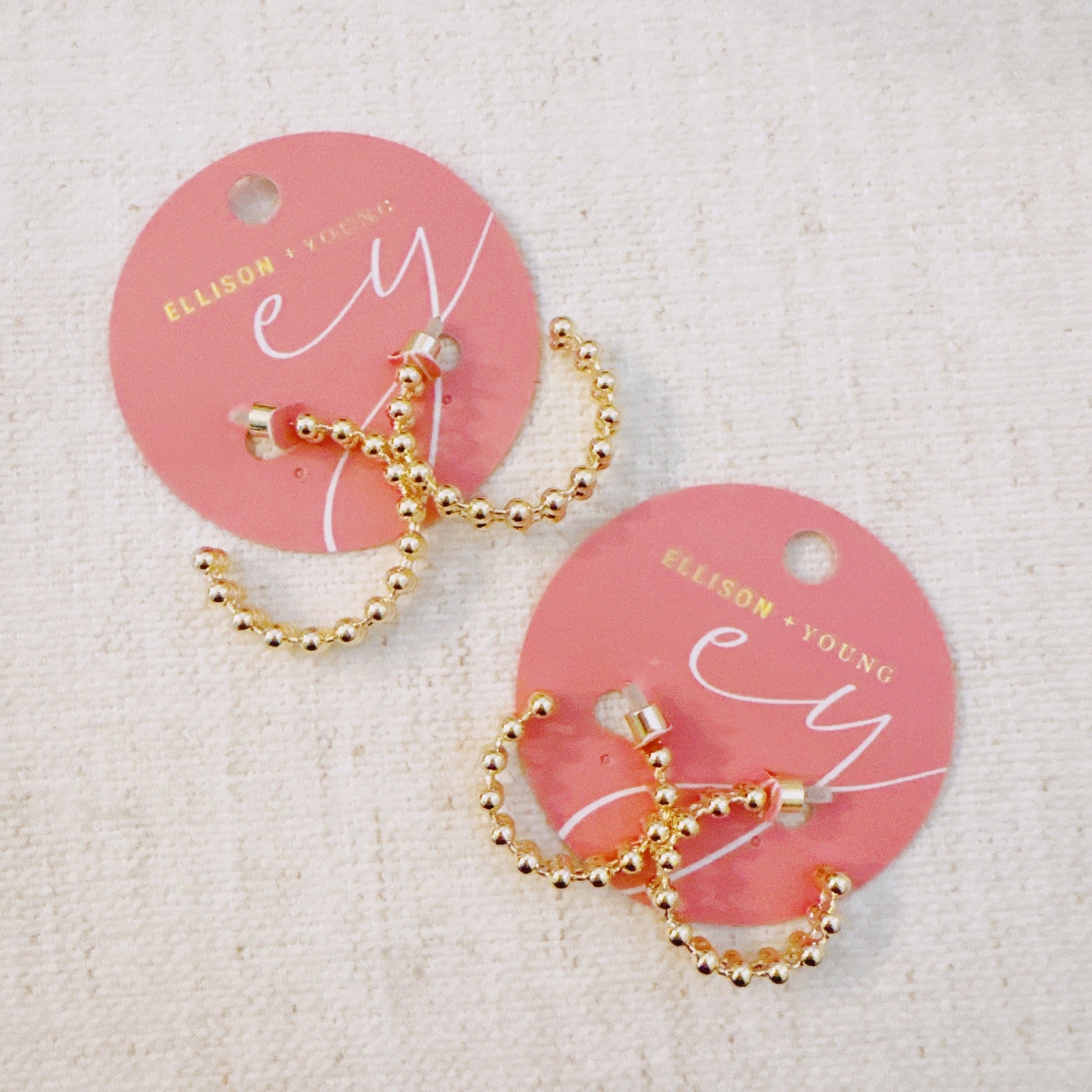 Add a bold touch to your look with the Doubled Ball Chain Hoop Earrings. These unique earrings feature a doubled hoop design with eye-catching ball chain accents, perfect for elevating any outfit. Ideal for both everyday wear and special occasions.