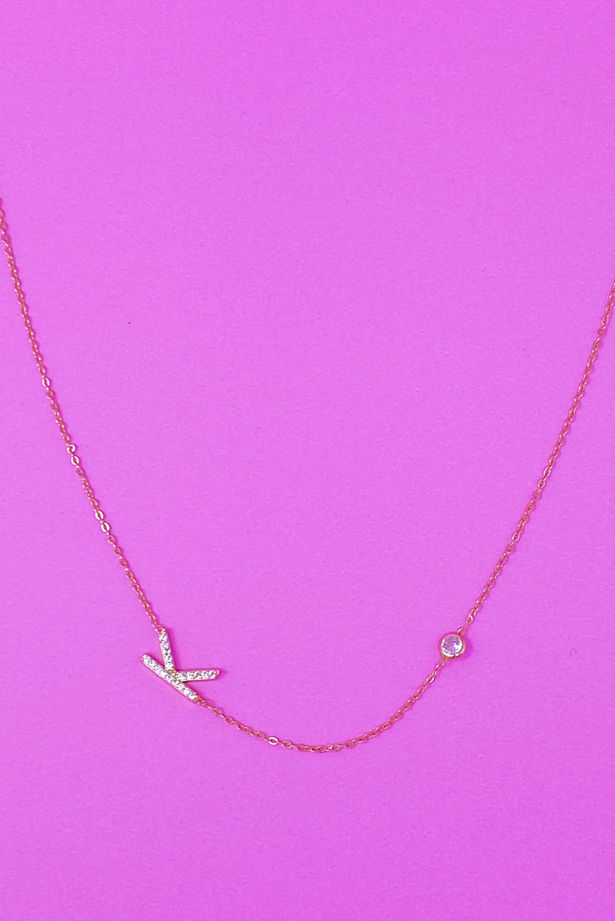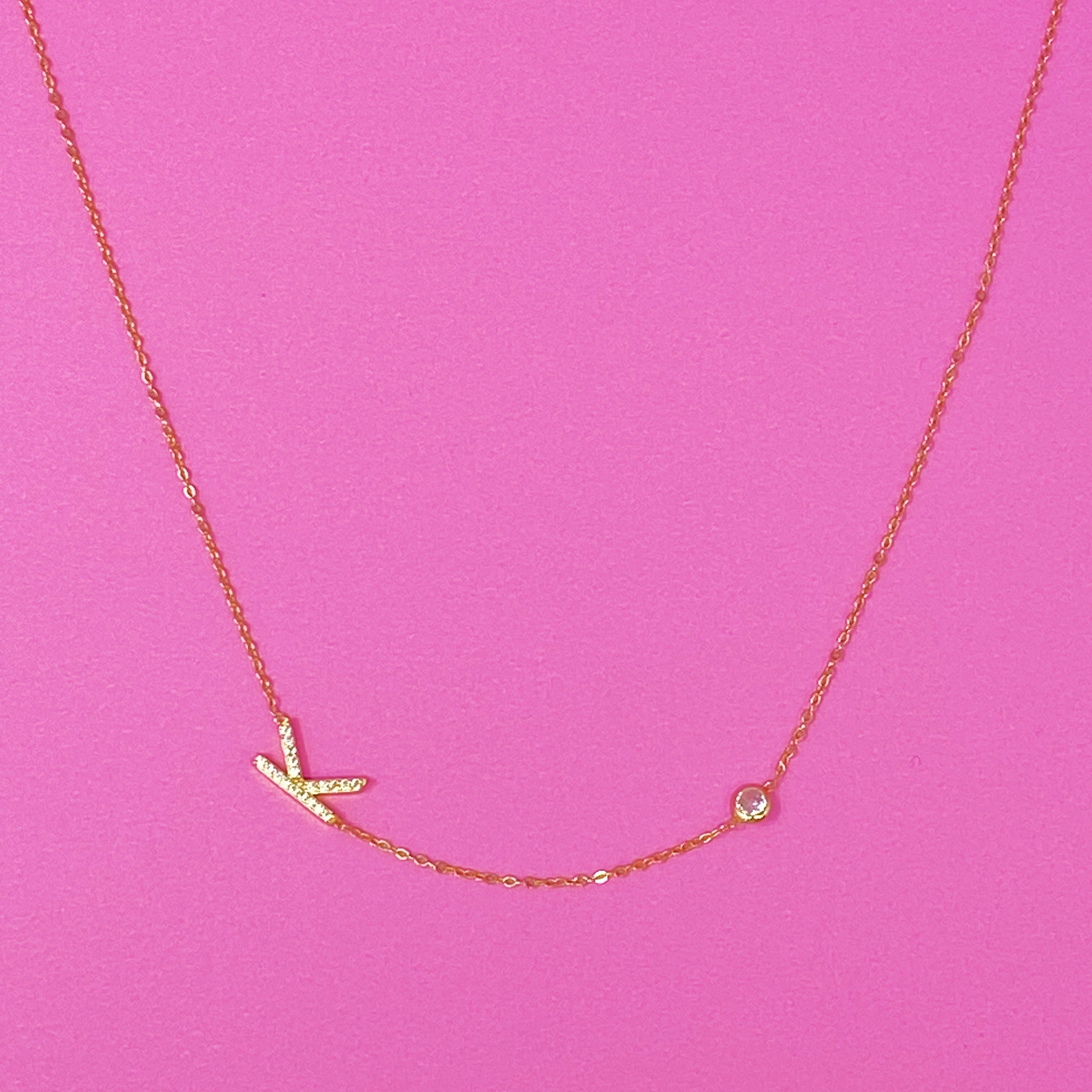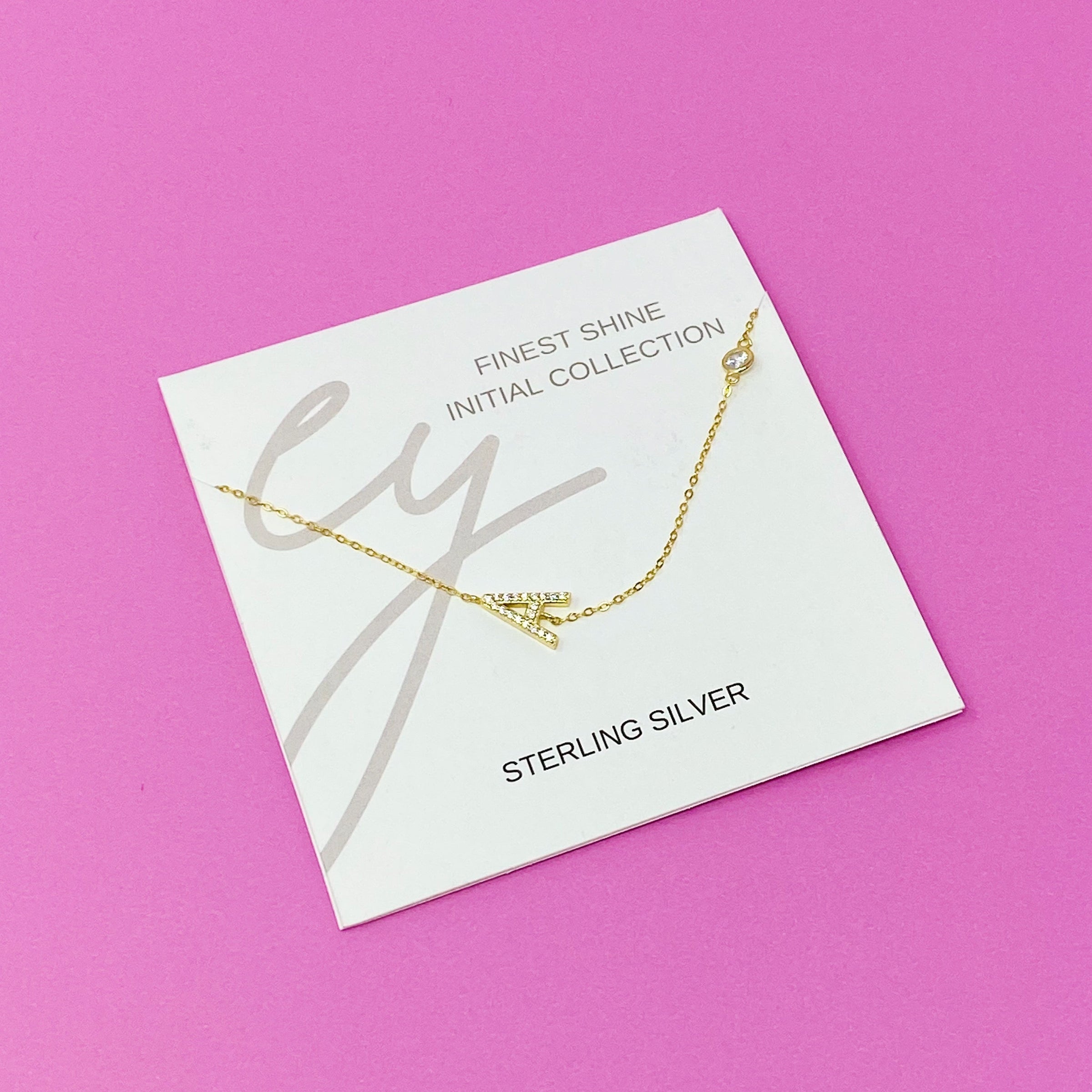 Beautiful understated side hanging initial necklace. Dainty chain, delicate shine on initial and small CZ on the chain make perfect harmony in each piece. Comes on our pretty Ellison + Young special card that is designed for this collection.