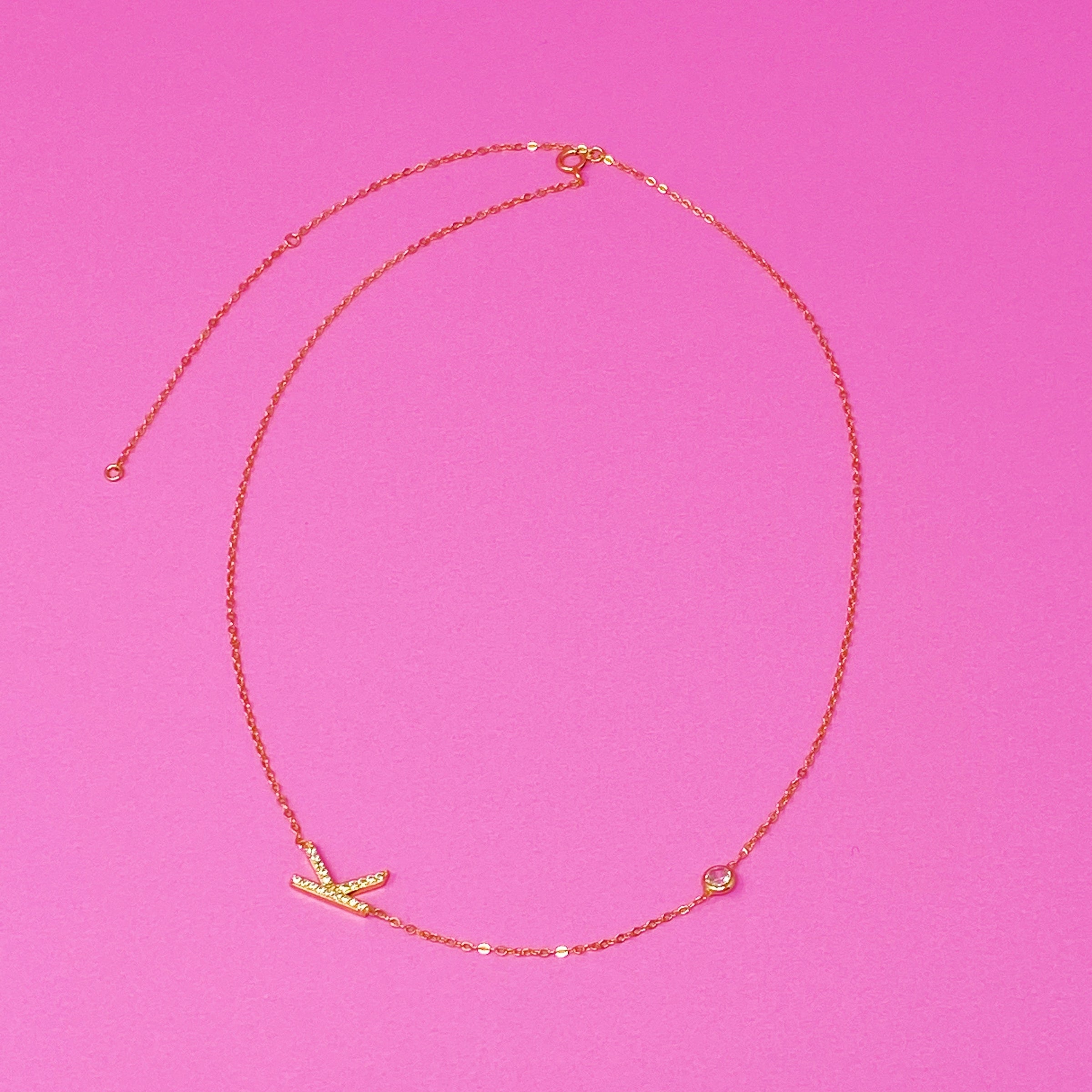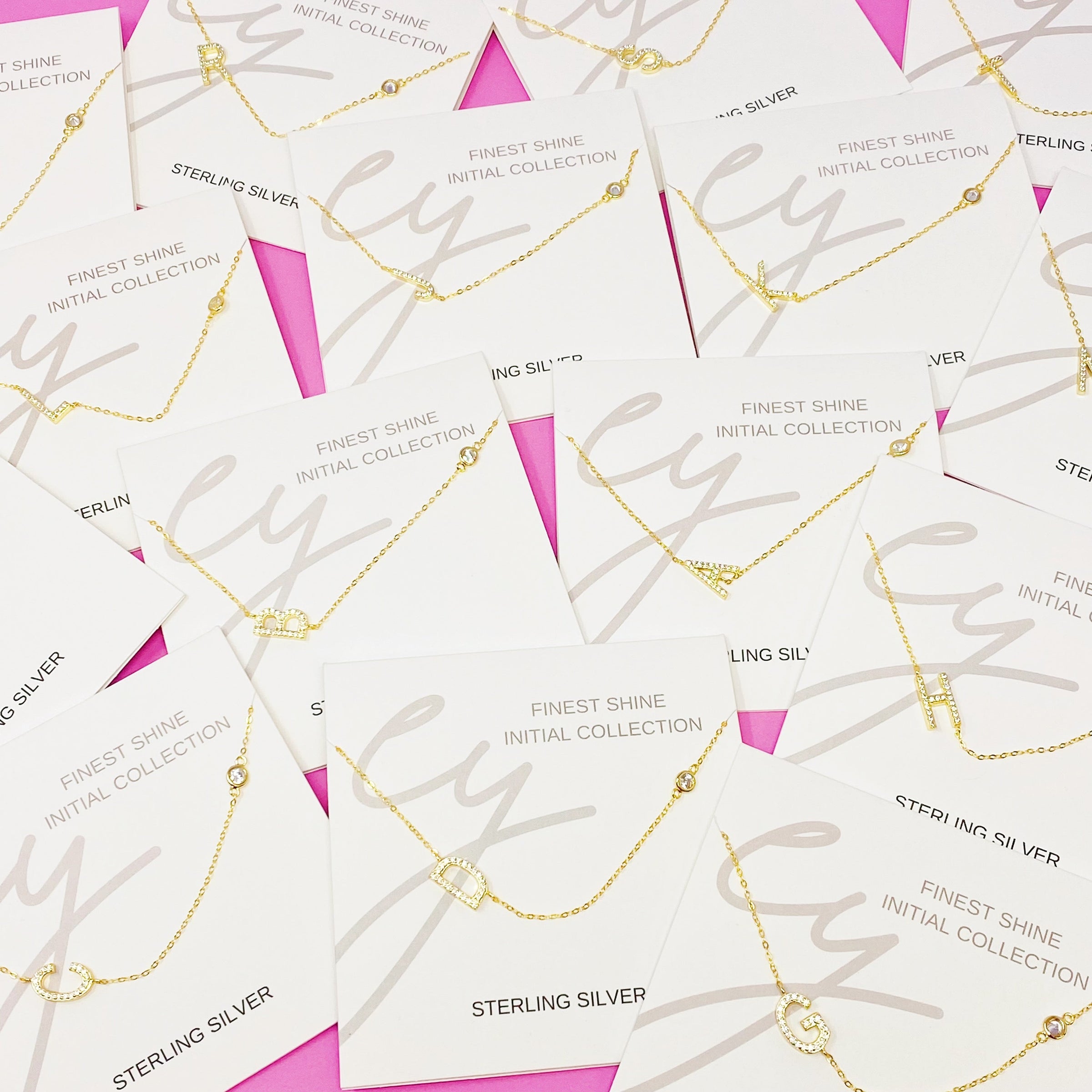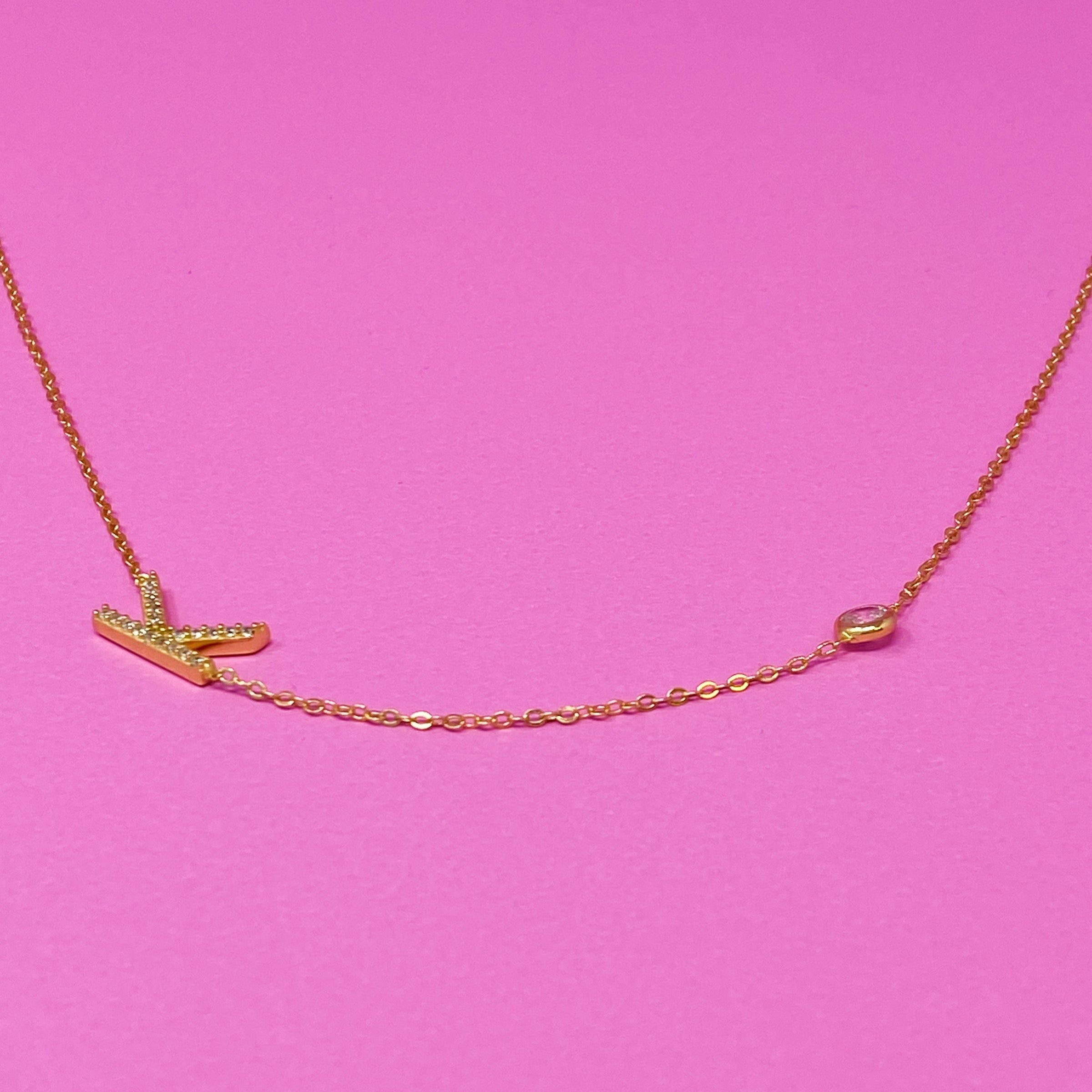 Beautiful understated side hanging initial necklace. Dainty chain, delicate shine on initial and small CZ on the chain make perfect harmony in each piece. Comes on our pretty Ellison + Young special card that is designed for this collection.