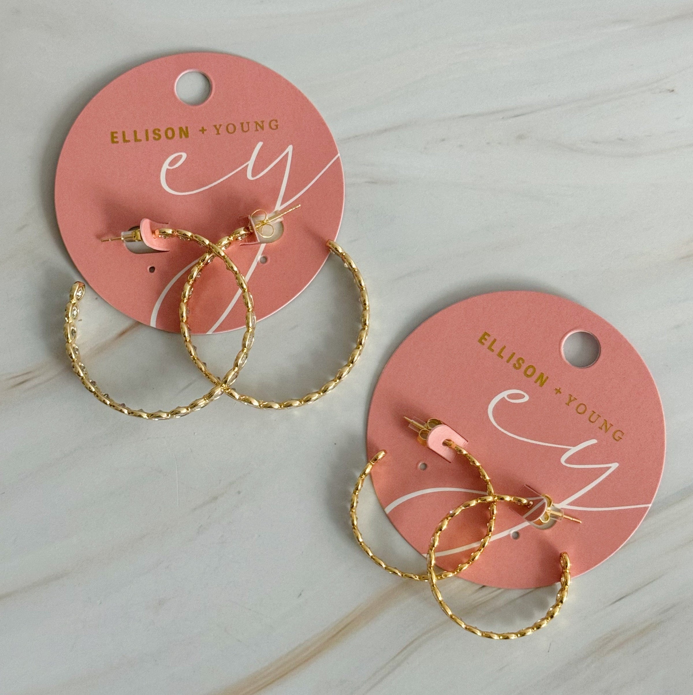 Such a stylish, sparkly statement pair of hoop earrings. Each piece is made with individual bezel set crystals to ensure a high quality, timeless style.
