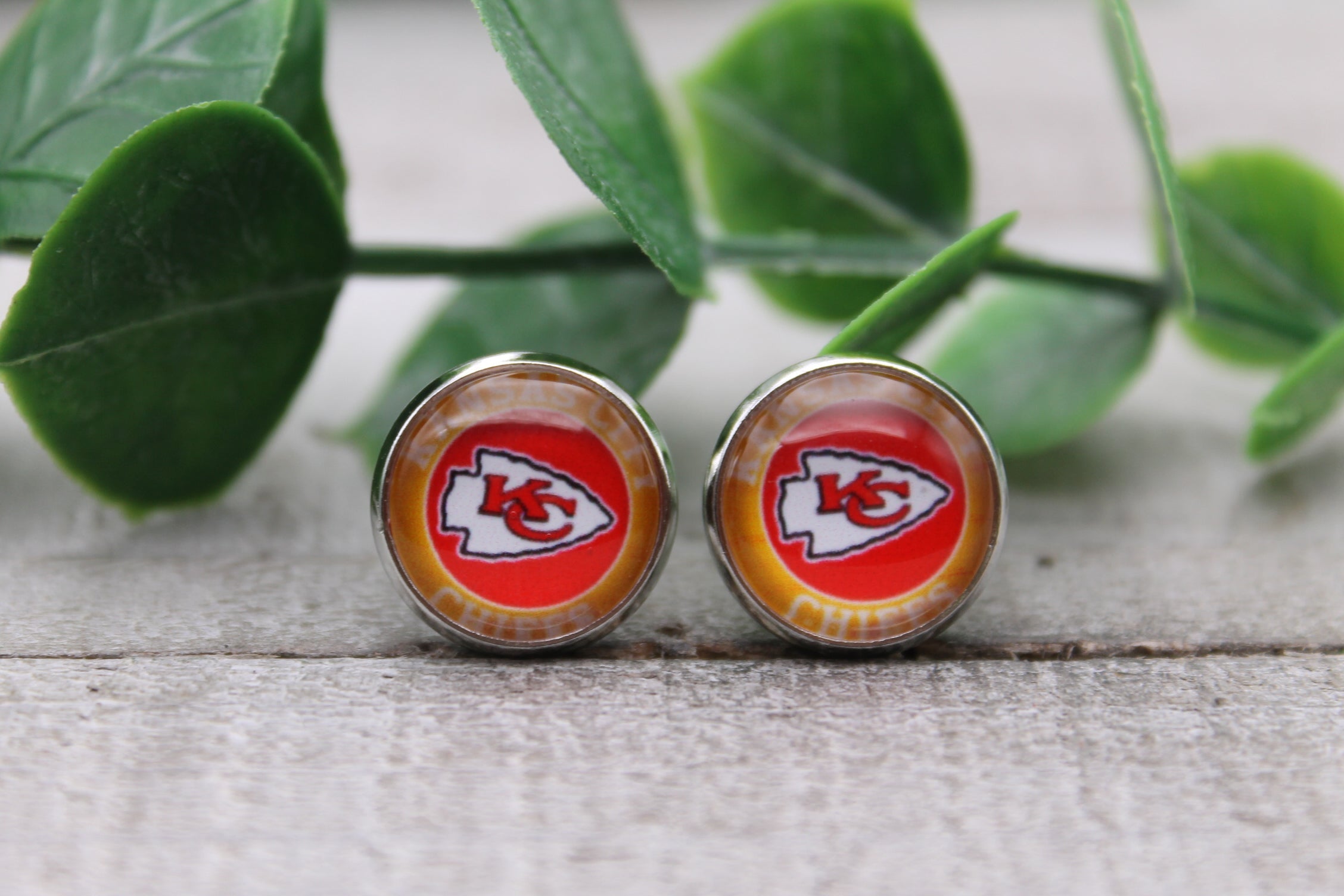 Football - KC Chiefs Circle | 12mm Glass Stud Earrings | Hypoallergenic