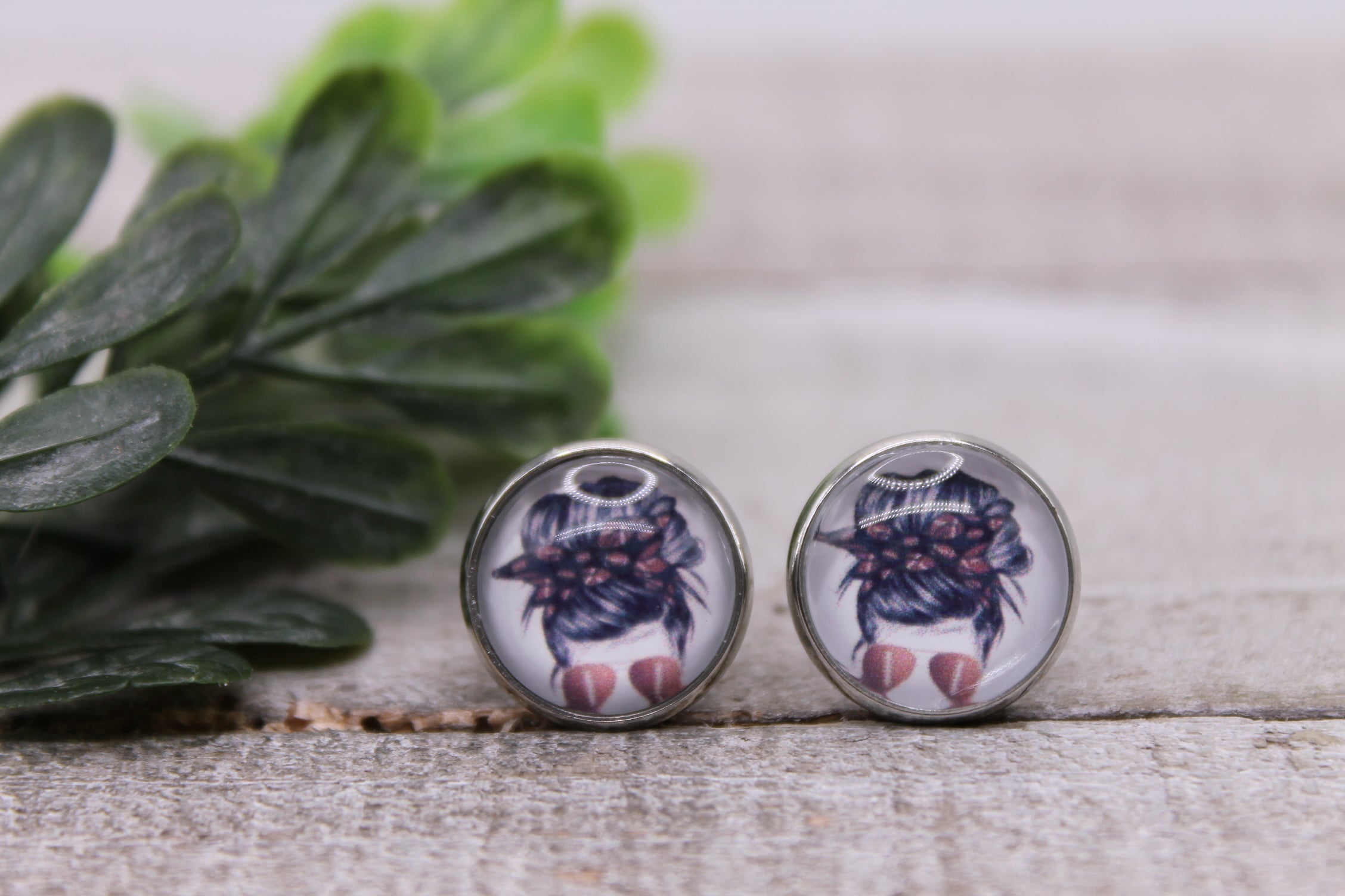 Football Messy Bun & Sunnies || 12mm Glass Stud Earrings || Hypoallergenic