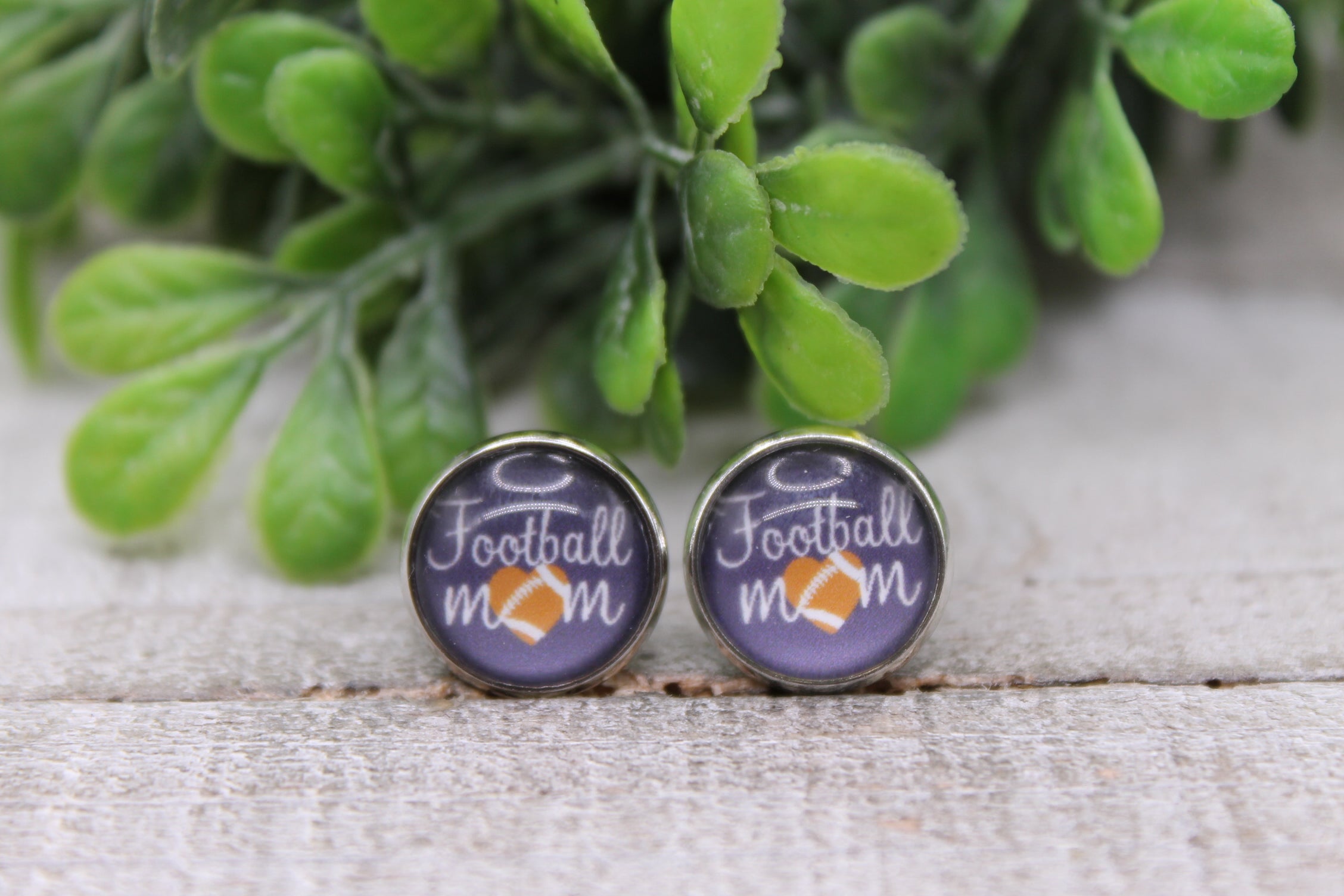 Football MOM Heart || 12mm Glass Stud Earrings || Hypoallergenic