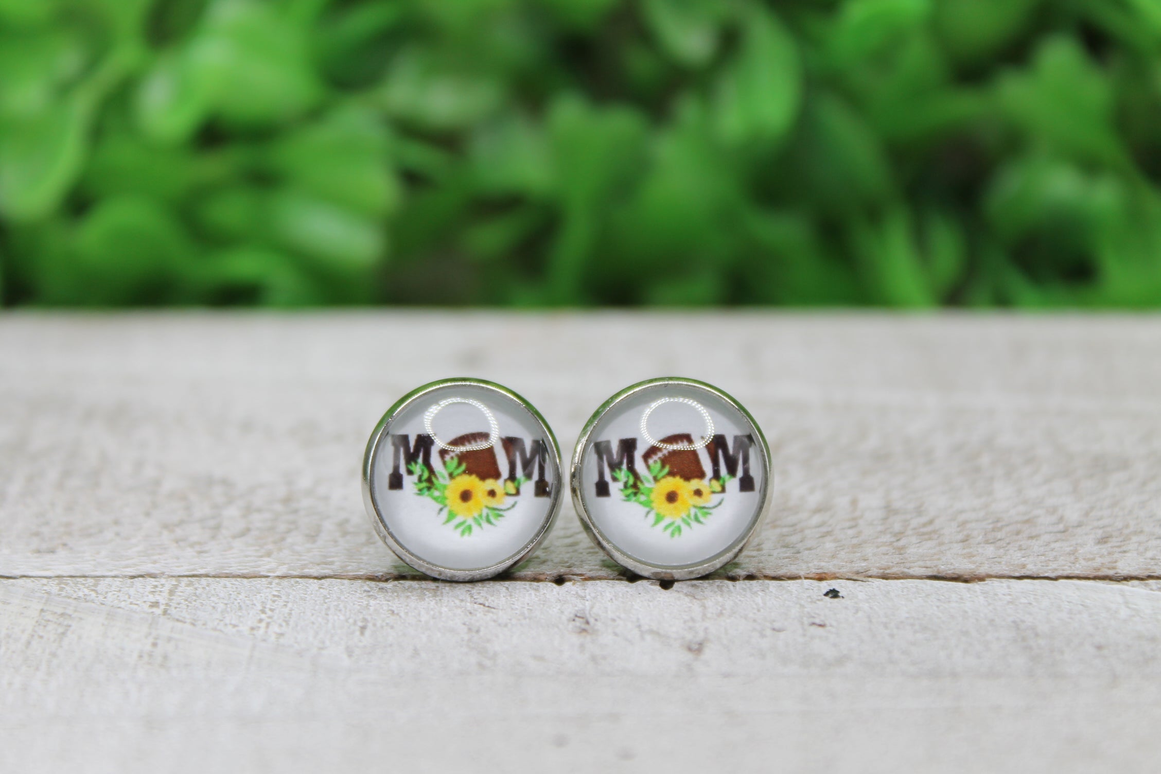 Football Mom Sunflower 12mm Glass Stud Earrings