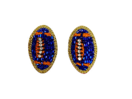 These football earrings are the perfect earrings for game day. Cheer on your team with our blue and orange football earrings.