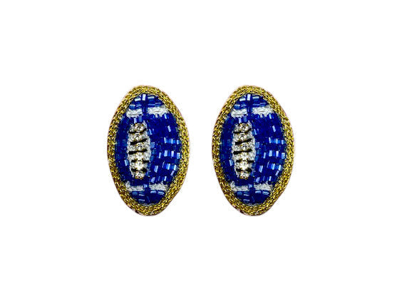 Football Stud Earrings - Blue and White