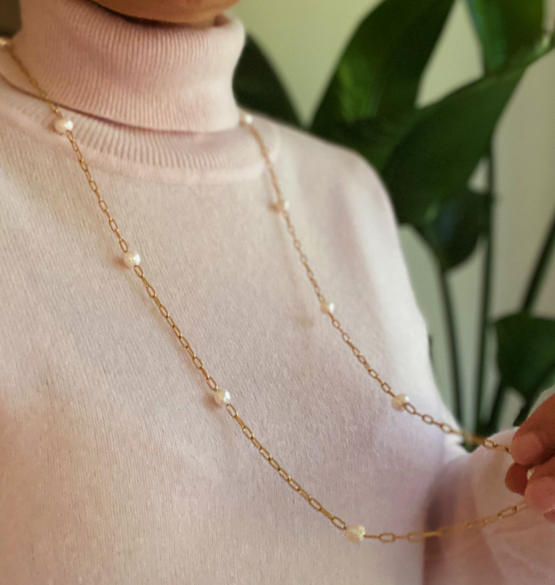 *Dainty Chic with smaller pearls(approximately 0.25") with dainty chain