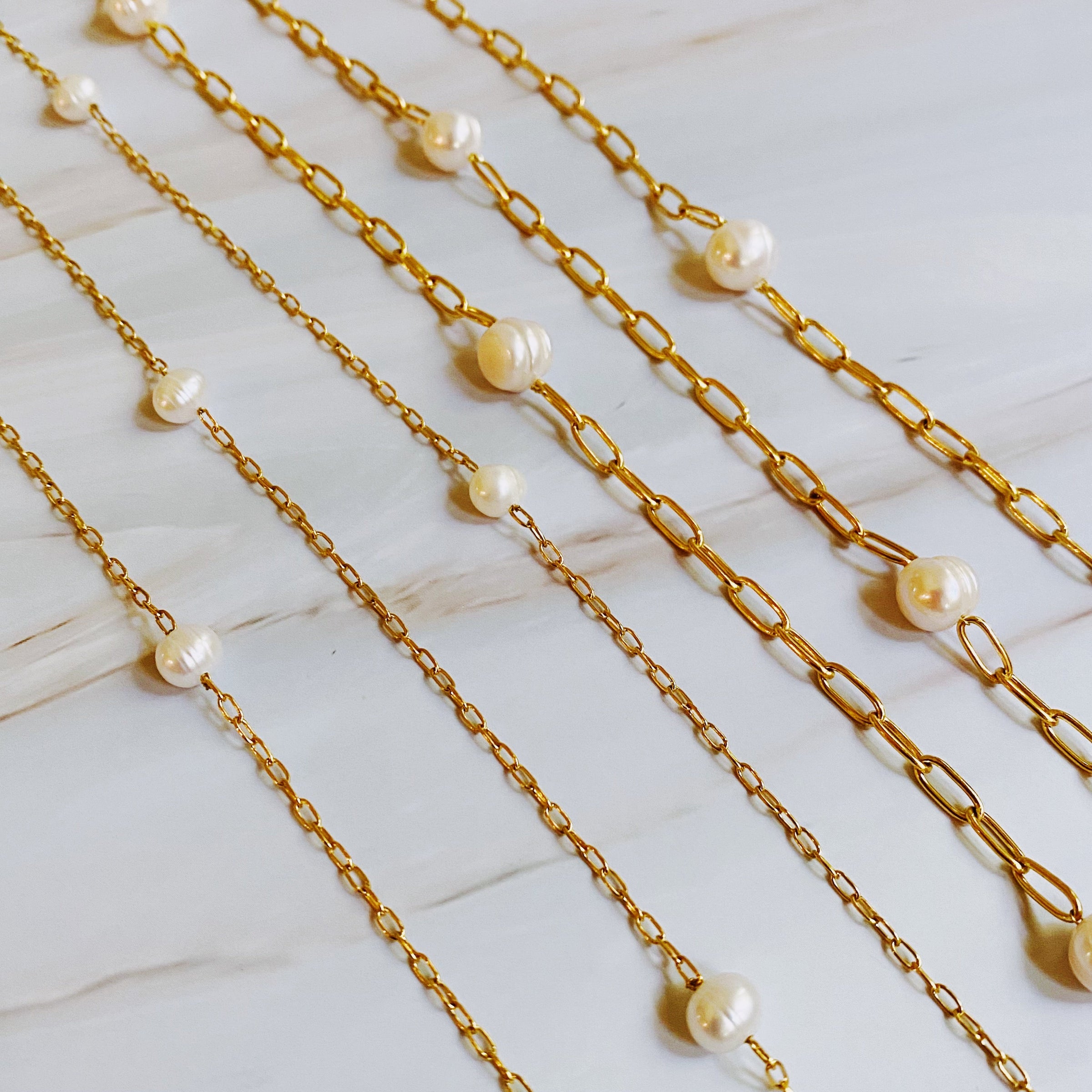 *Daily Elegance with slightly larger pearls(approximately 0.4") with link chain.