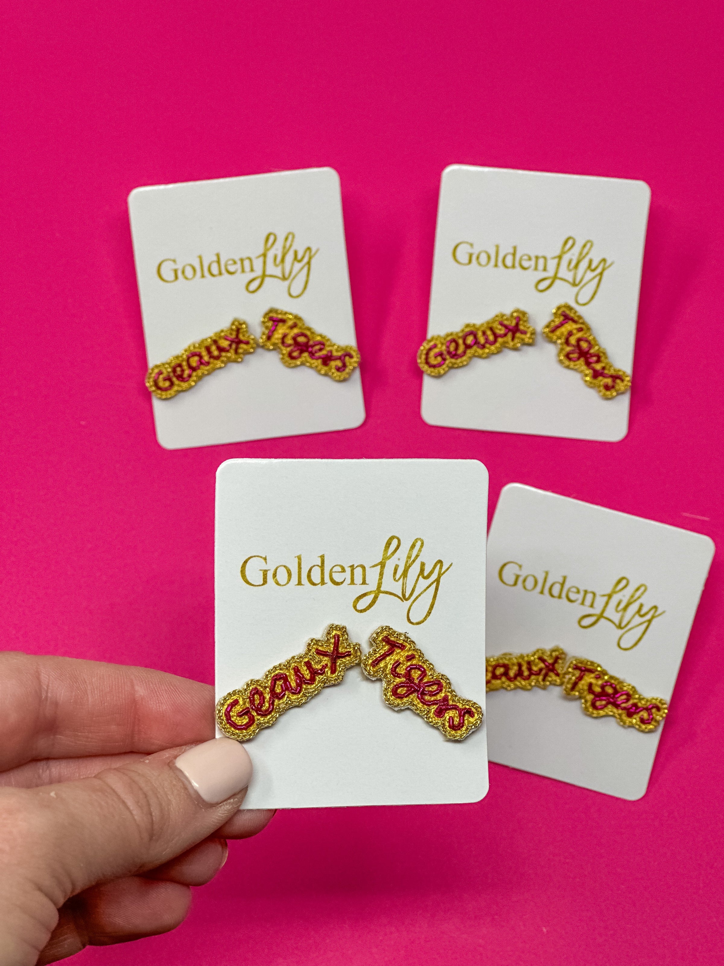 Show your Tiger pride in style with our Geaux Tigers Stud Earrings! These playful yet fierce studs feature sparkling tiger heads with bold detailing, perfect for game days, tailgates, or showing off your LSU spirit year-round. Lightweight and eye-catching, they add just the right amount of roar to any outfit. Geaux Tigers! 🐯💜💛