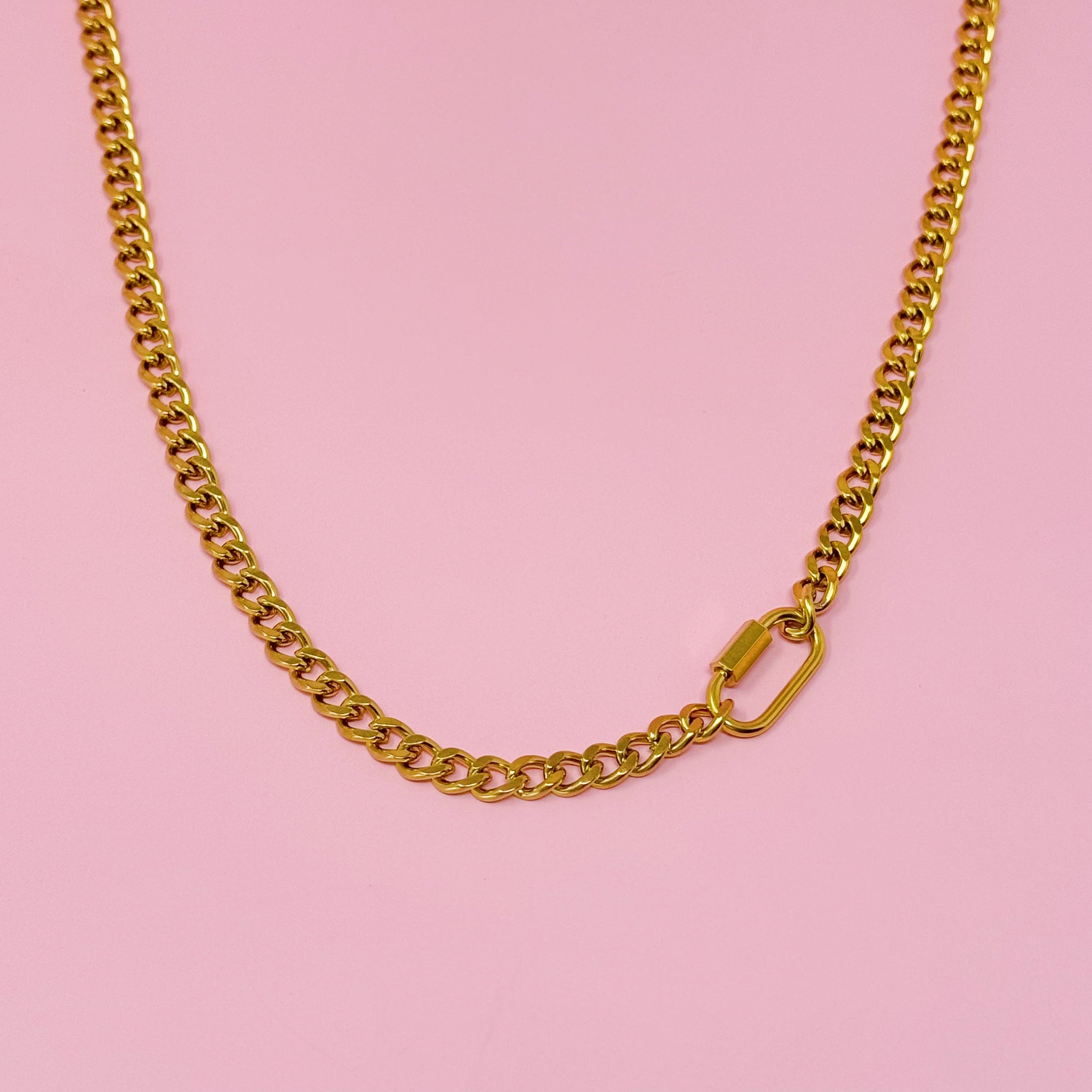Introducing our Golden Luxe Chain Necklace, combining simplicity and edge in one stunning piece. The luxe chain design adds a touch of sophistication to any outfit, making it the perfect accessory for any occasion. The side hanging pendant link opens and great to hang any charms.