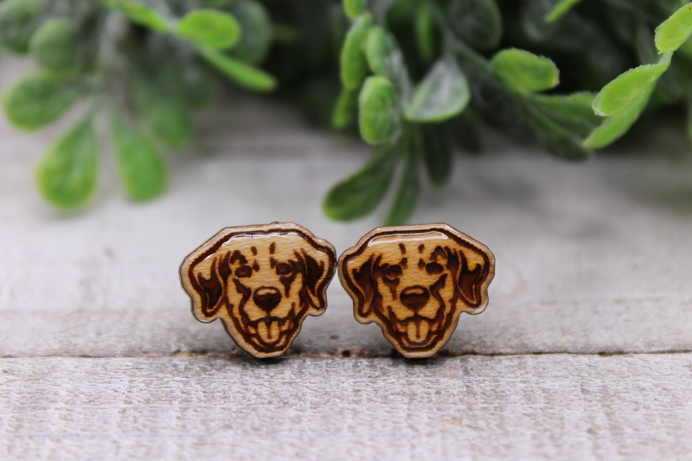 Golden Retriever Dog Breed || Wood Stud Earrings || Hypoallergenic