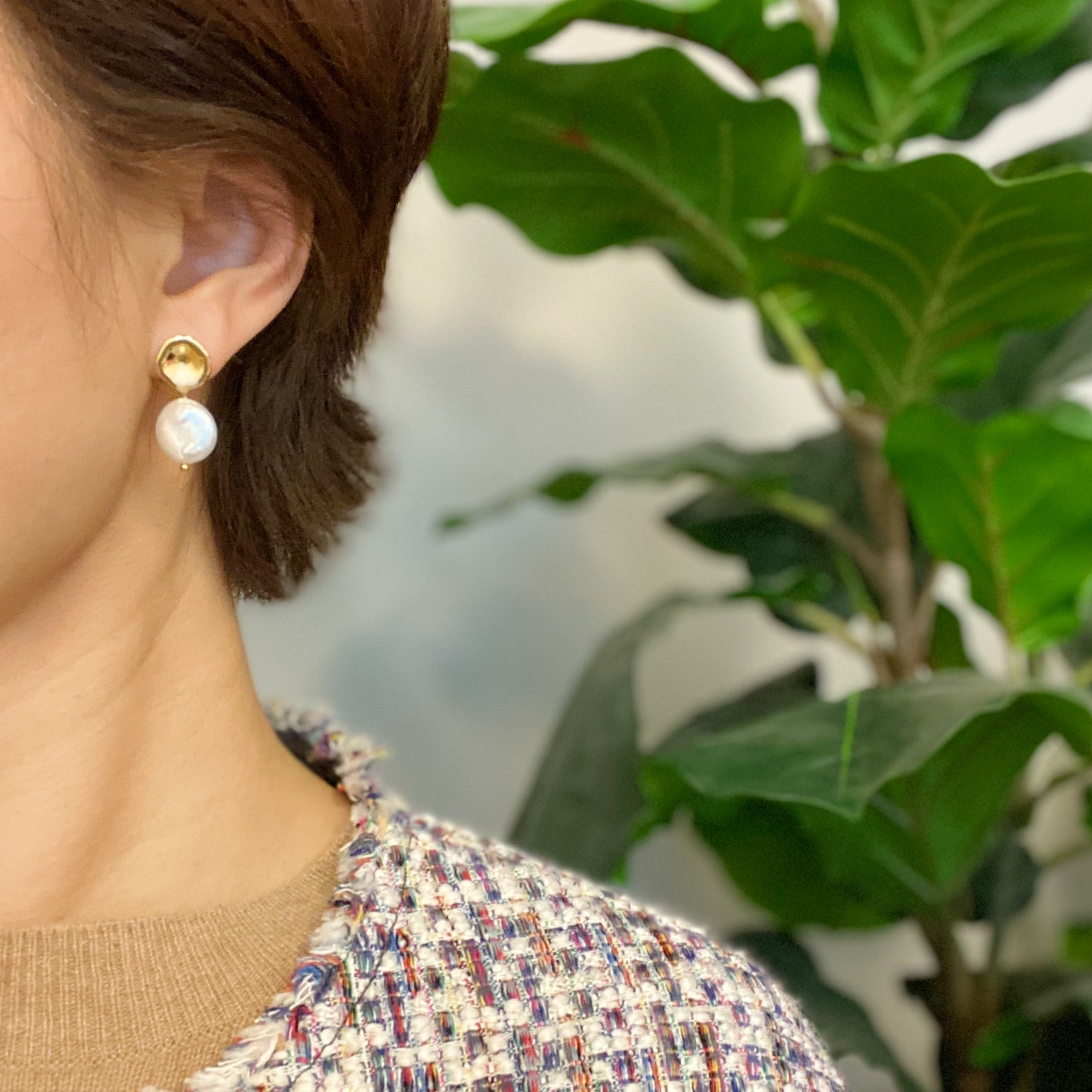 These Golden Shell Pearl Drop Earrings are an ideal blend of elegance and edginess. Featuring a trendy molten gold top and a classic shell button pearl dangle, these earrings are suitable for a variety of occasions, from formal to casual. Crafted with great attention to detail, they're sure to make a lasting impression.