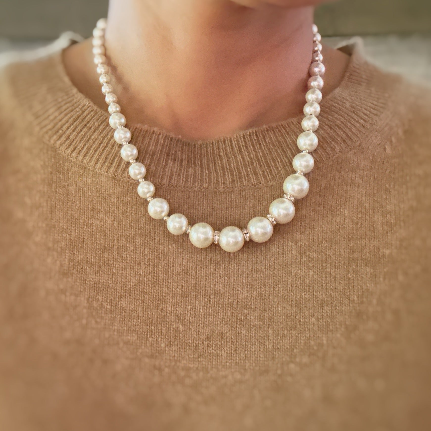 This Graduated Glam Pearl Necklace boasts a timeless design that effortlessly adds a touch of elegance to any outfit. The graduated pearls create a luxurious look while maintaining versatility, perfect for both formal occasions and everyday wear.