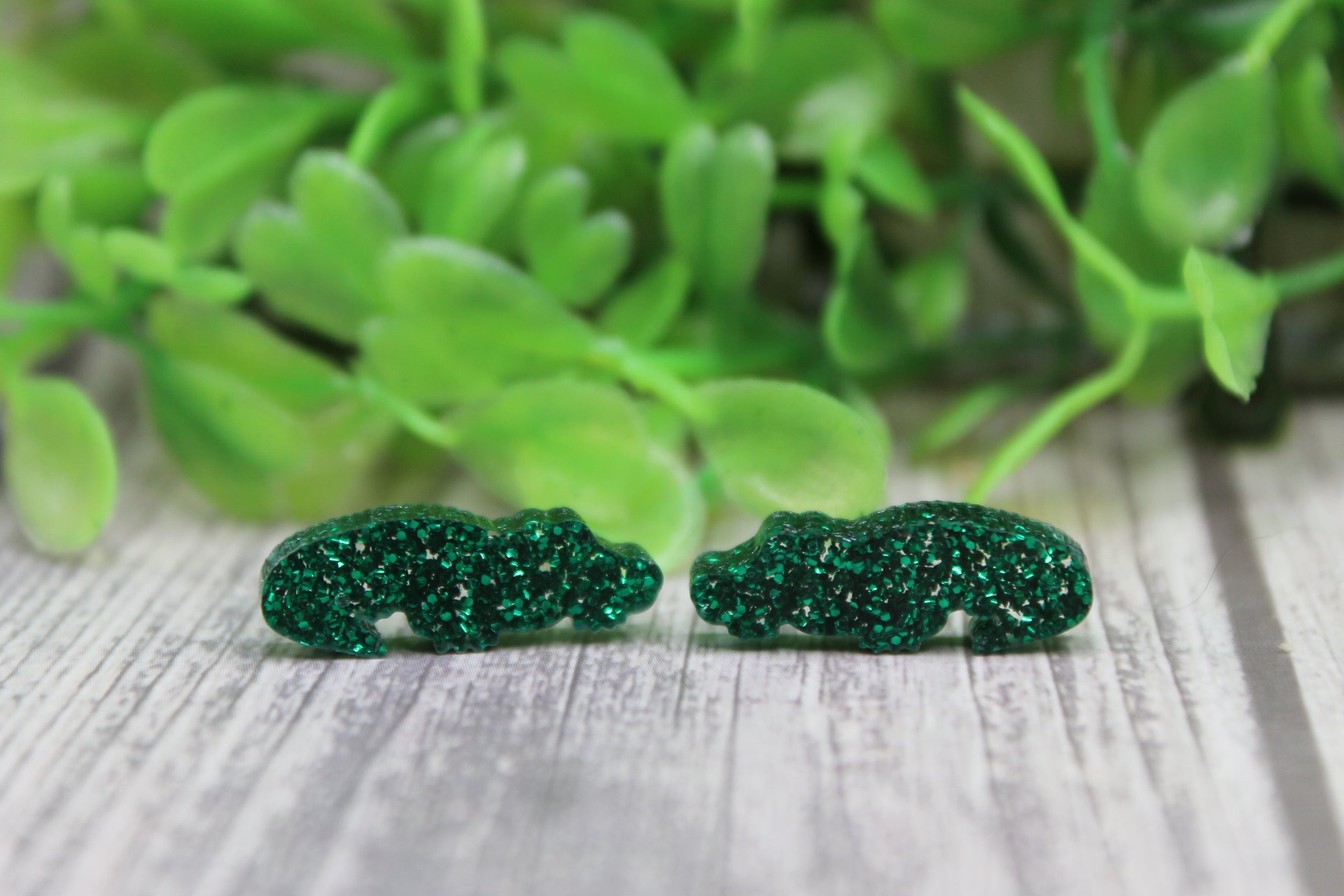 Green Glitter Alligators Stud Earrings