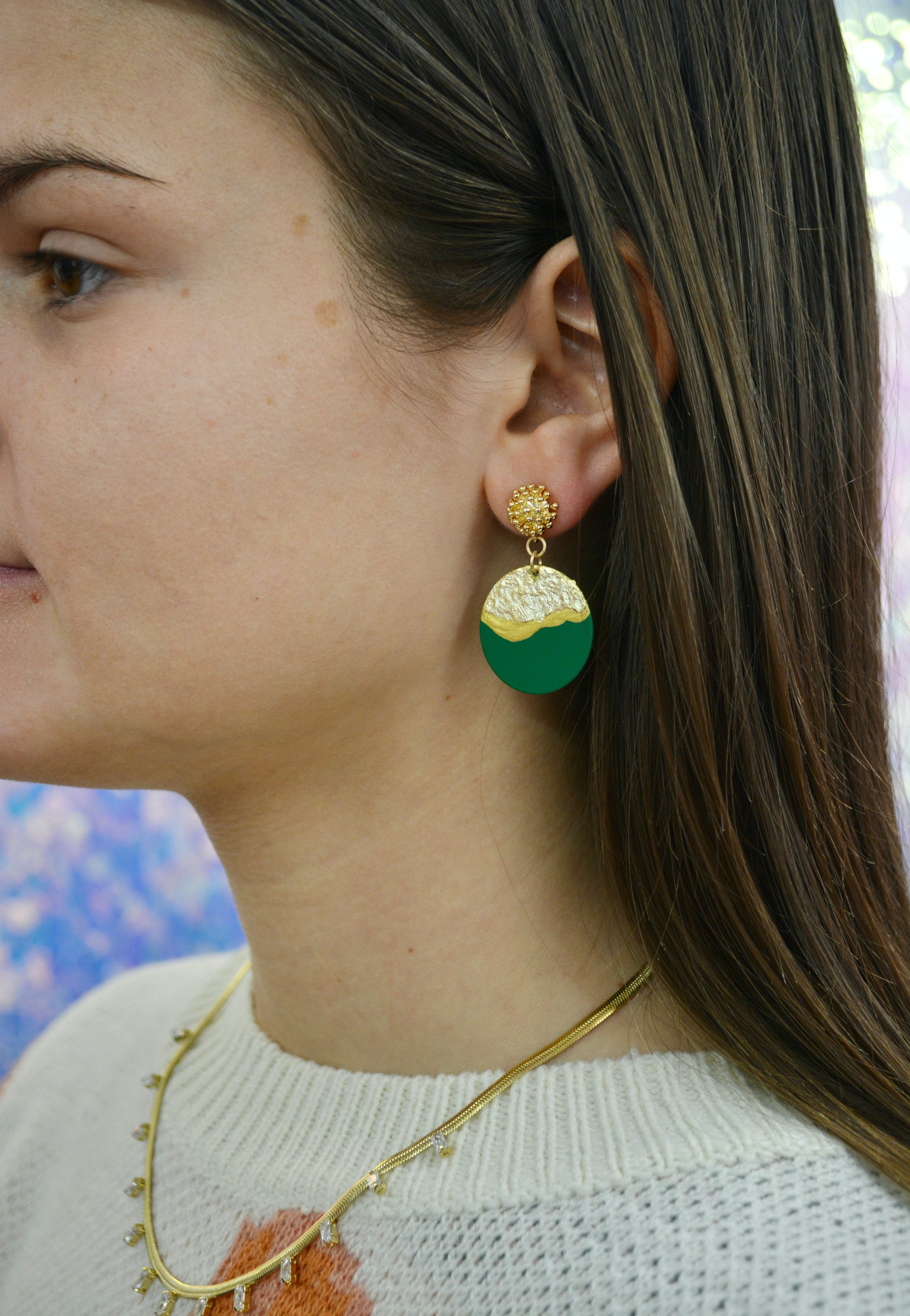 Green Lorelei Disc Earrings