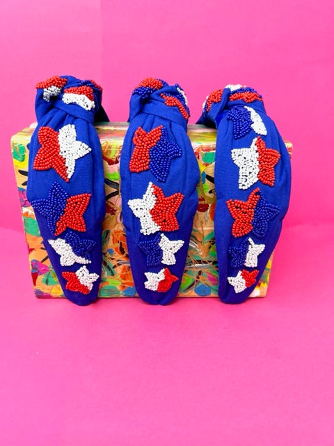 Cutest 4th of July Stars Headband. Embellished with seed bead detail.