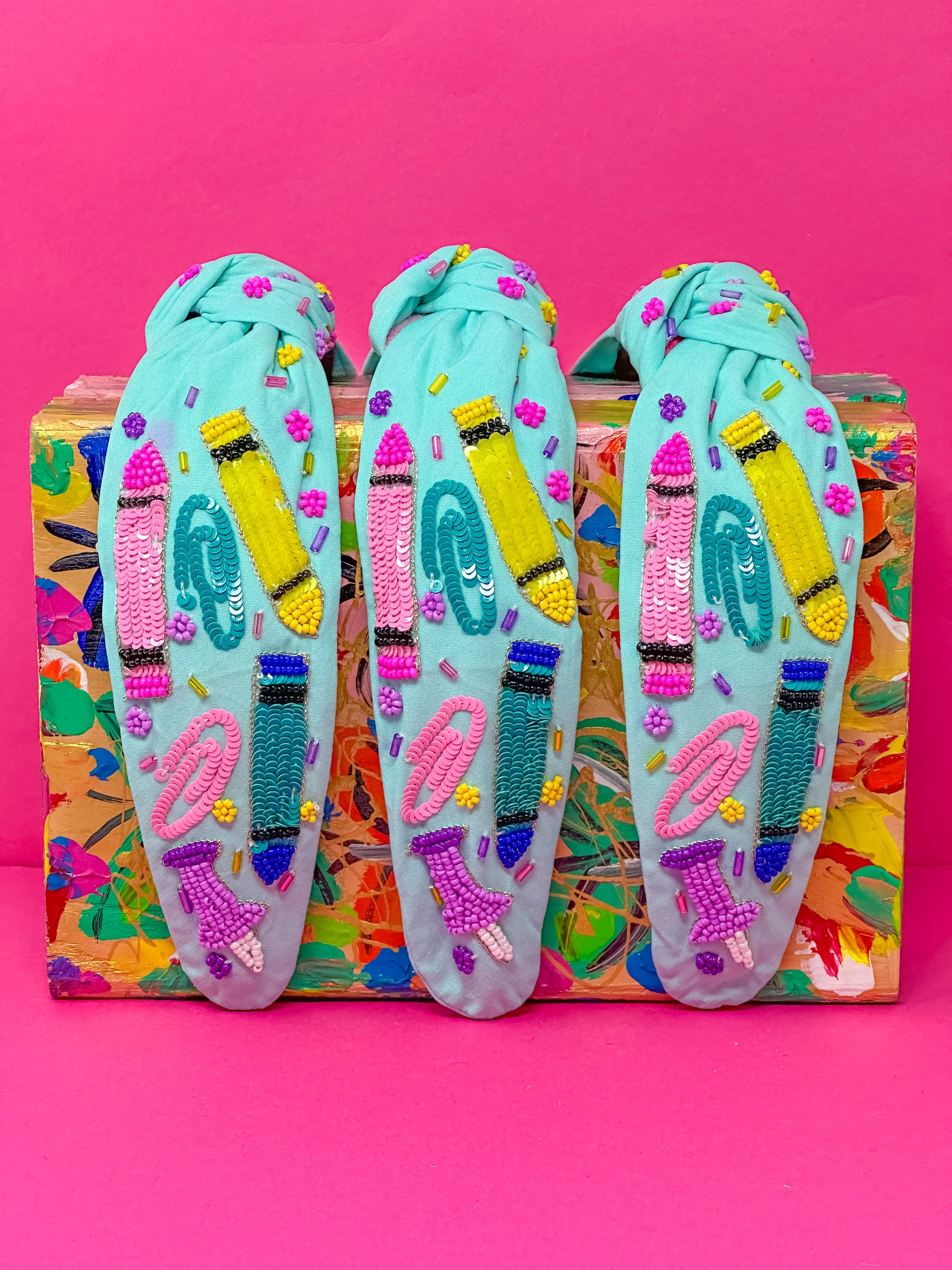 Celebrate your love for teaching in style with the Headband Knot – Teacher with Pencil and Paperclip. This playful design features a classic knotted top adorned with colorful pencil and paperclip accents, creating a fun, school-inspired look. Crafted for comfort, it’s the perfect accessory for the classroom, back-to-school events, or gifting to your favorite educator.