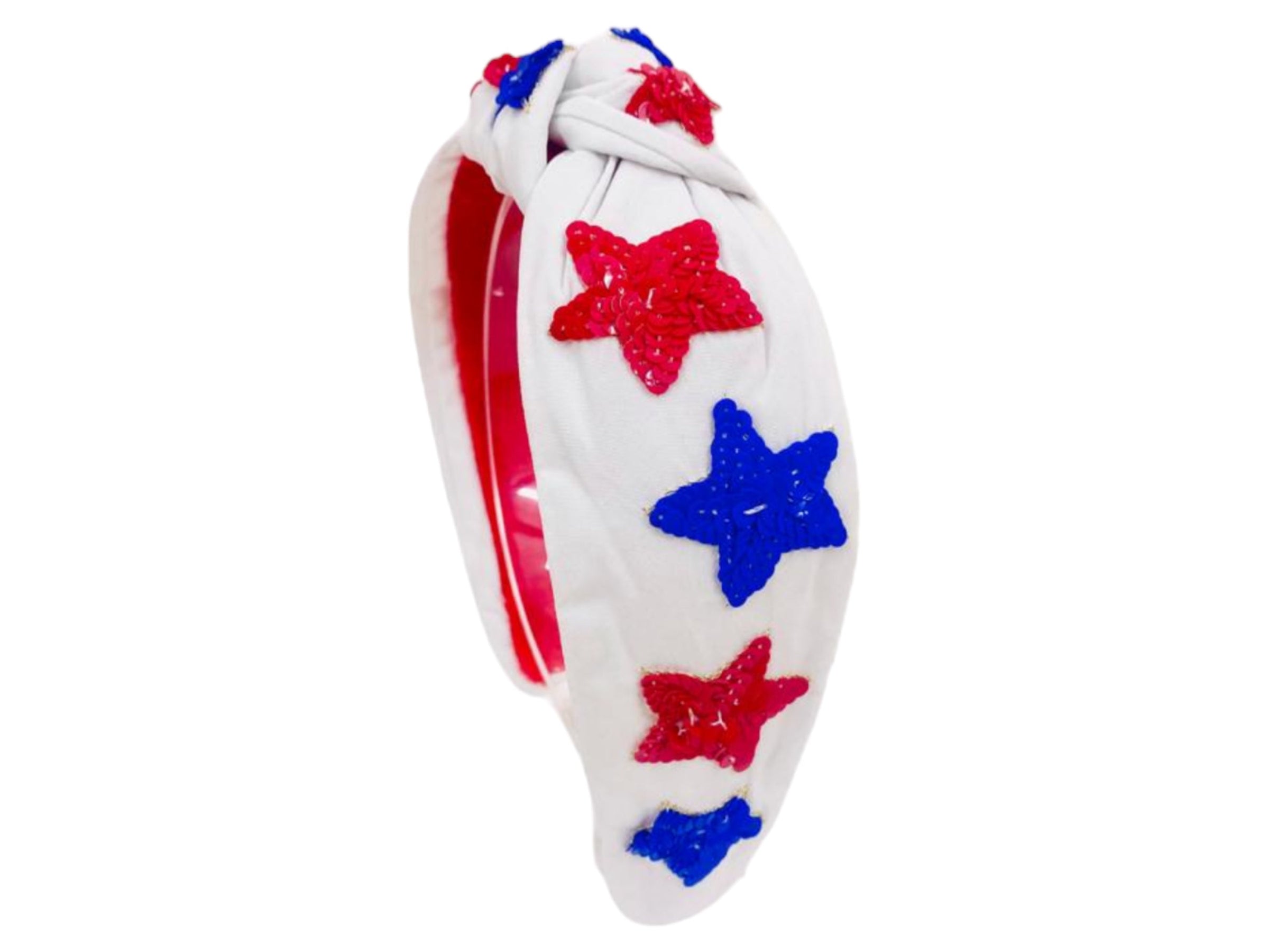 Such a fun 4th of July headband. Embellished with sequin star detail.
