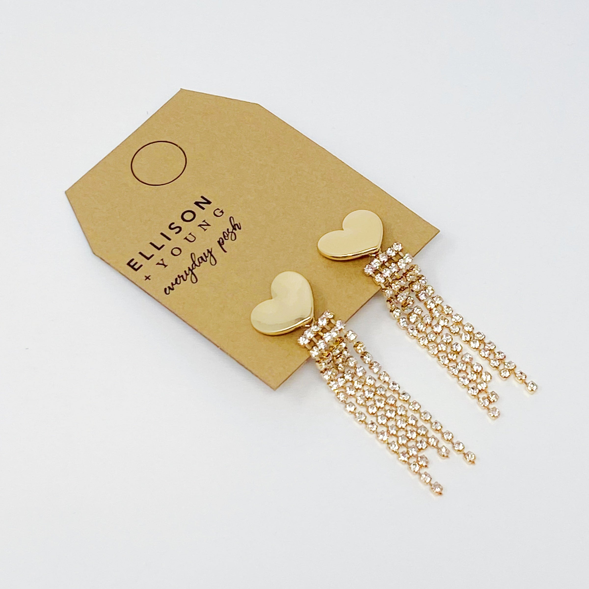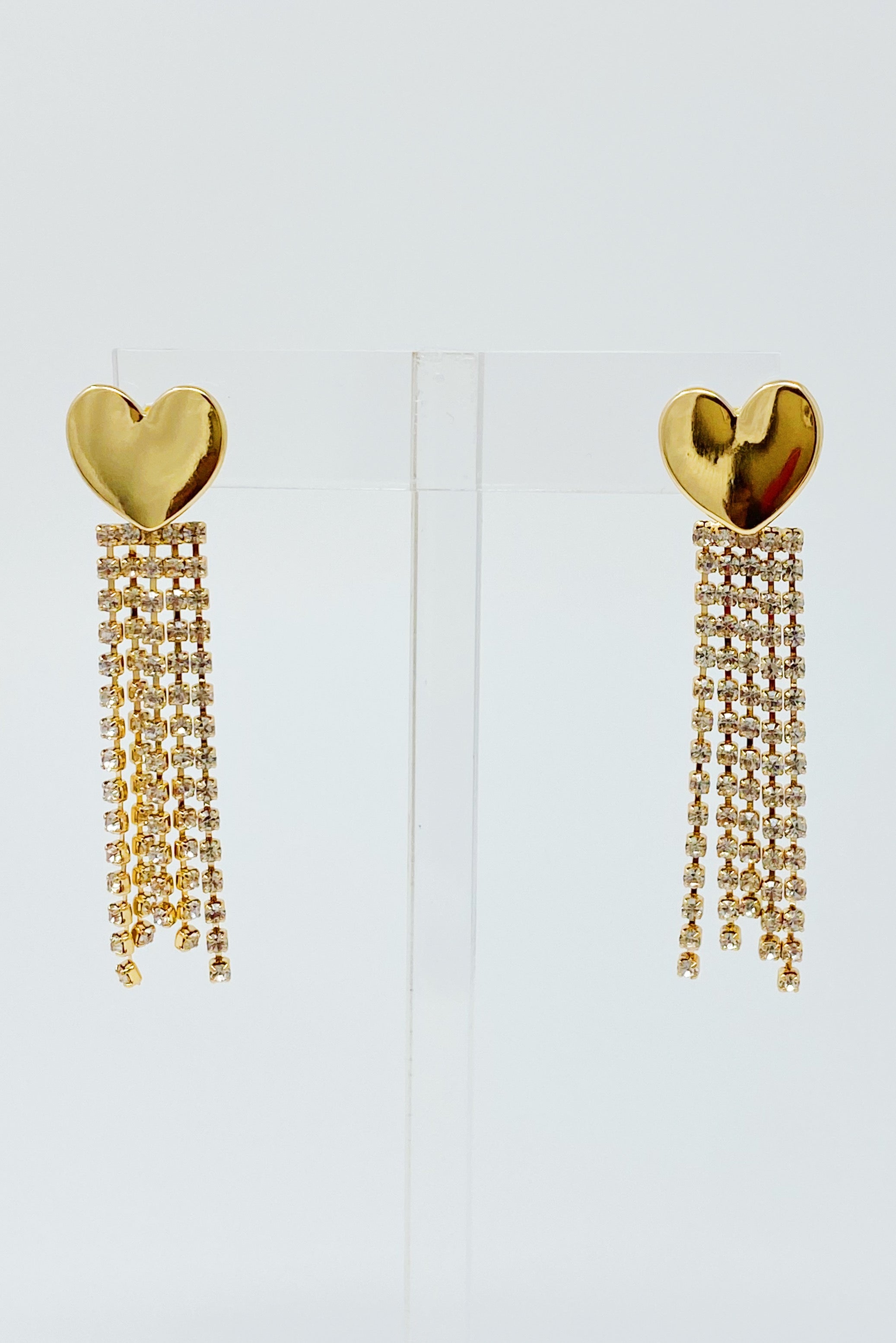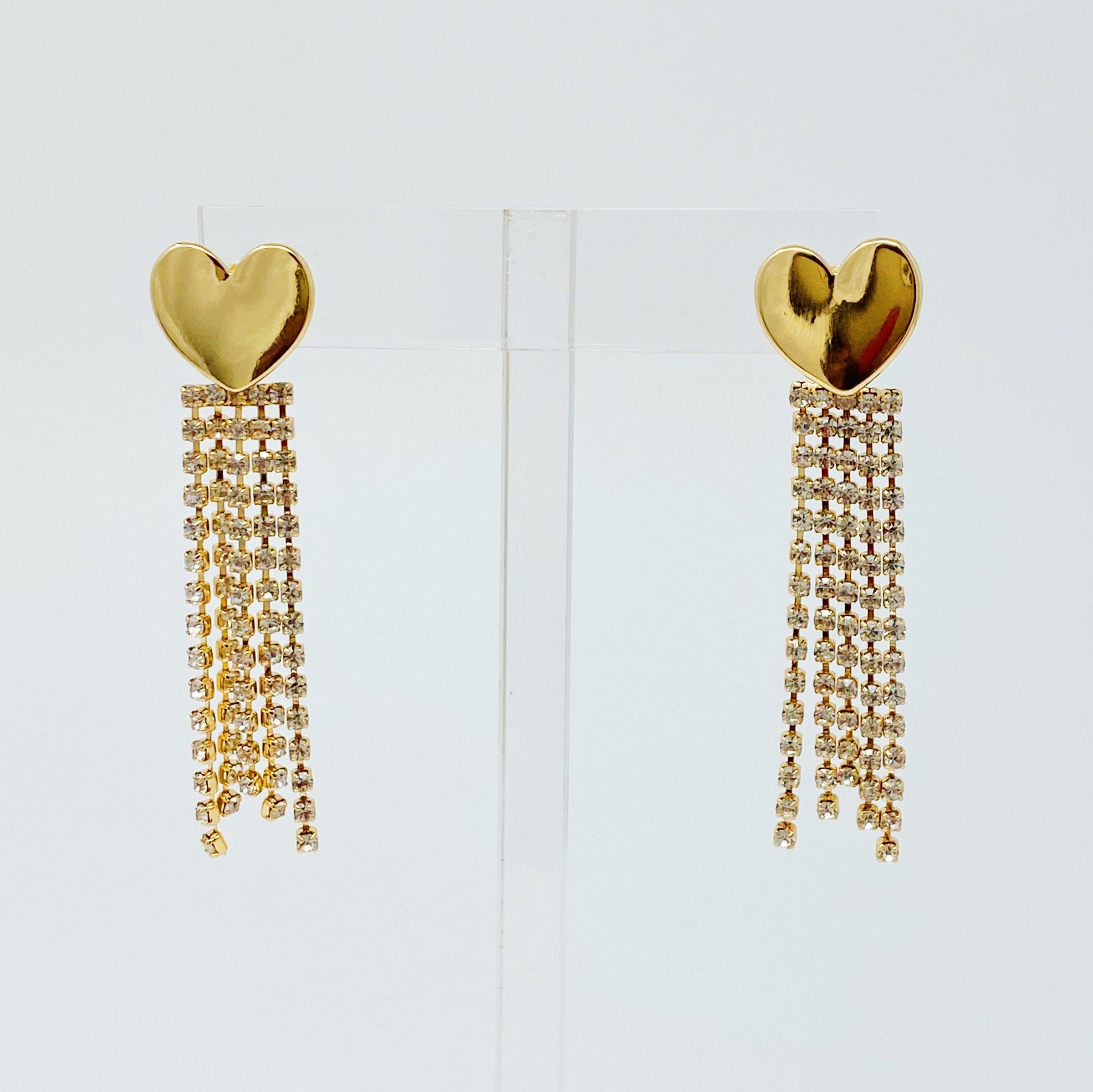 Polished golden heart with Cubic Zirconia chain strands drop make beautiful harmony!