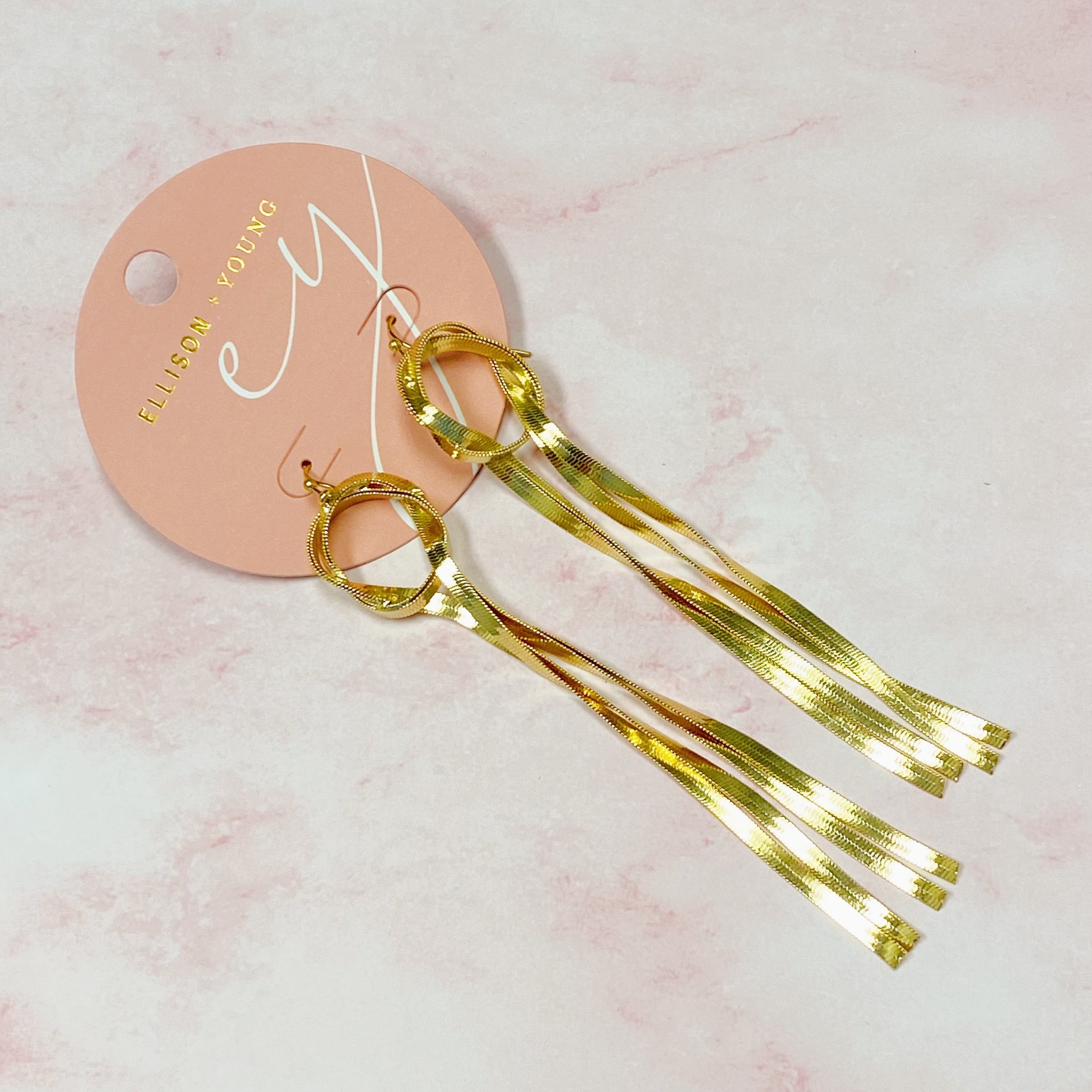 These Herringbone Chain Drop Earrings will add a touch of chic elegance to any look. Crafted with a herringbone chain and a sophisticated design twist, these earrings are sure to make a statement.