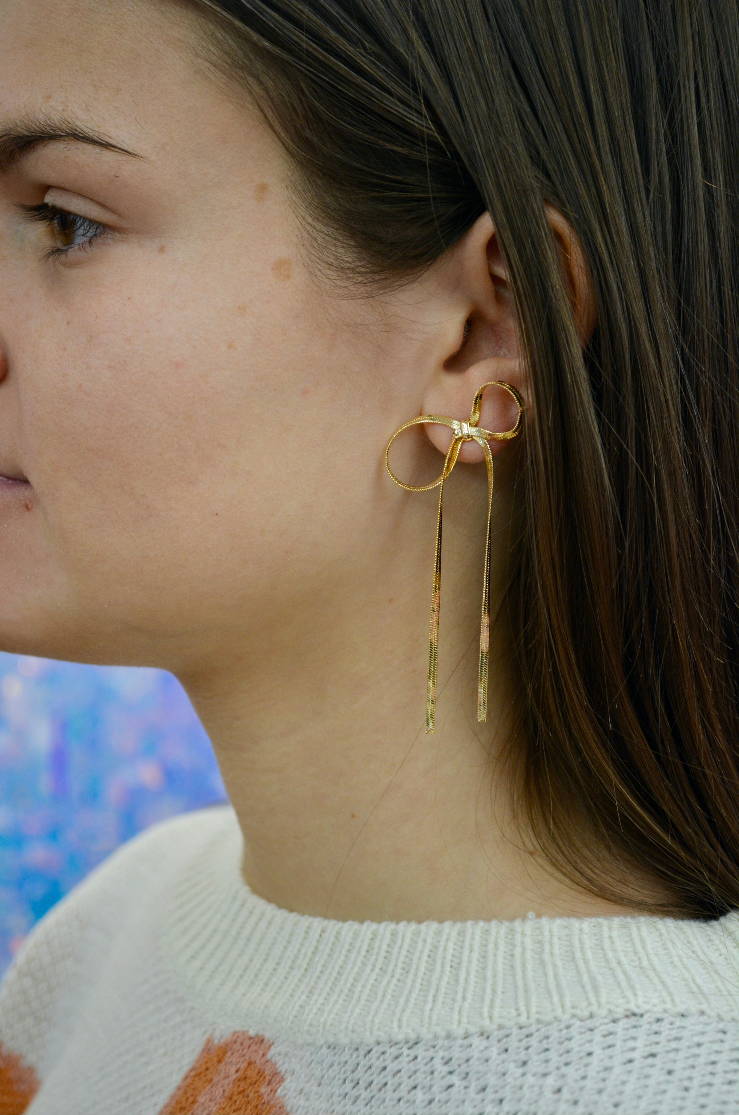 Add some playful flair to any outfit with our Herringbone Ribbon Earrings. The unique herringbone ribbon design is sure to catch attention (and compliments!). Dress them up or down for any occasion. Carefully crafted for a lightweight yet durable wear.
