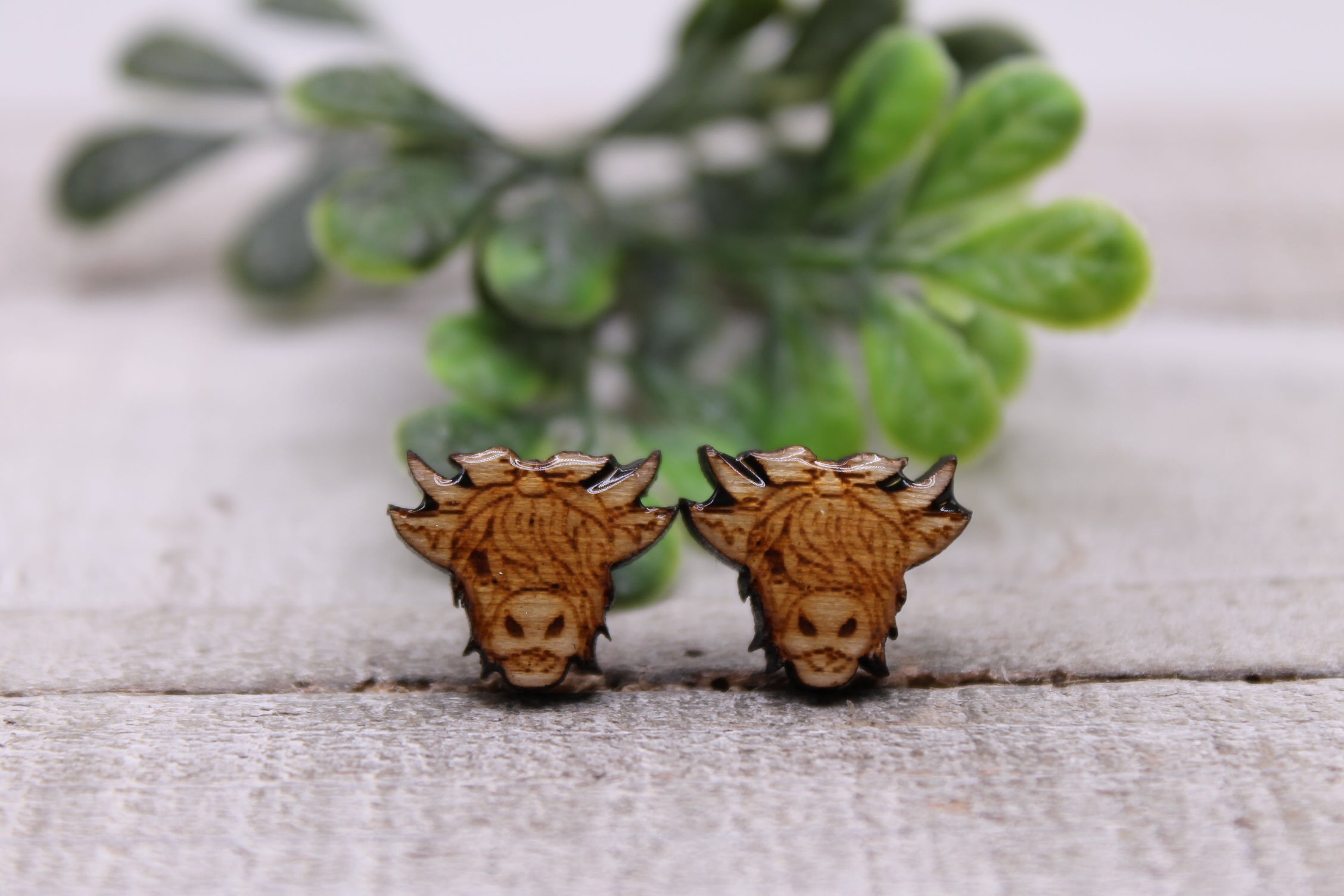 Highland Cow with Headband || 12mm Stud Earrings || Hypoallergenic