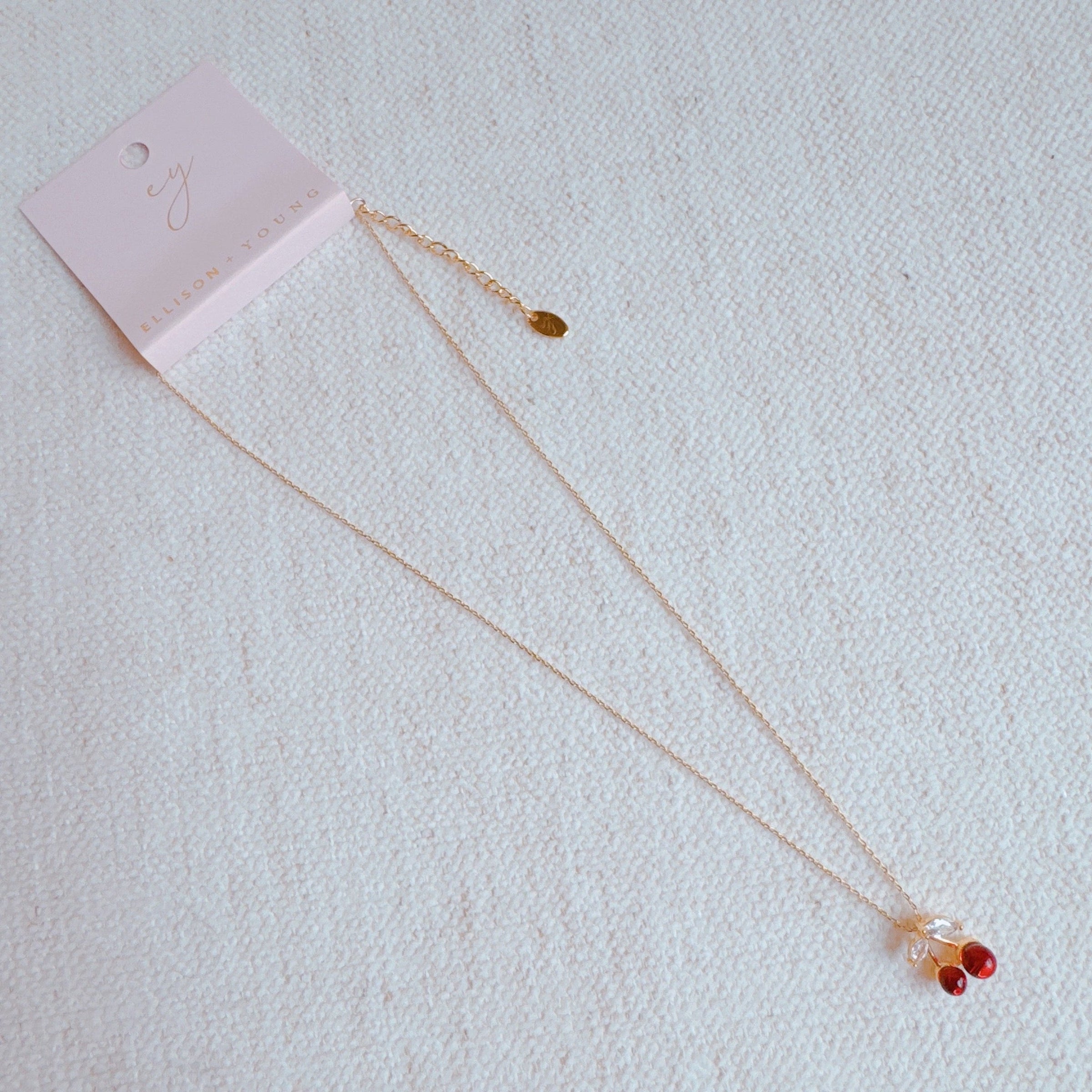 ✔️ Playful Cherry Pendant – Cute cherry design with sparkling jewel accents